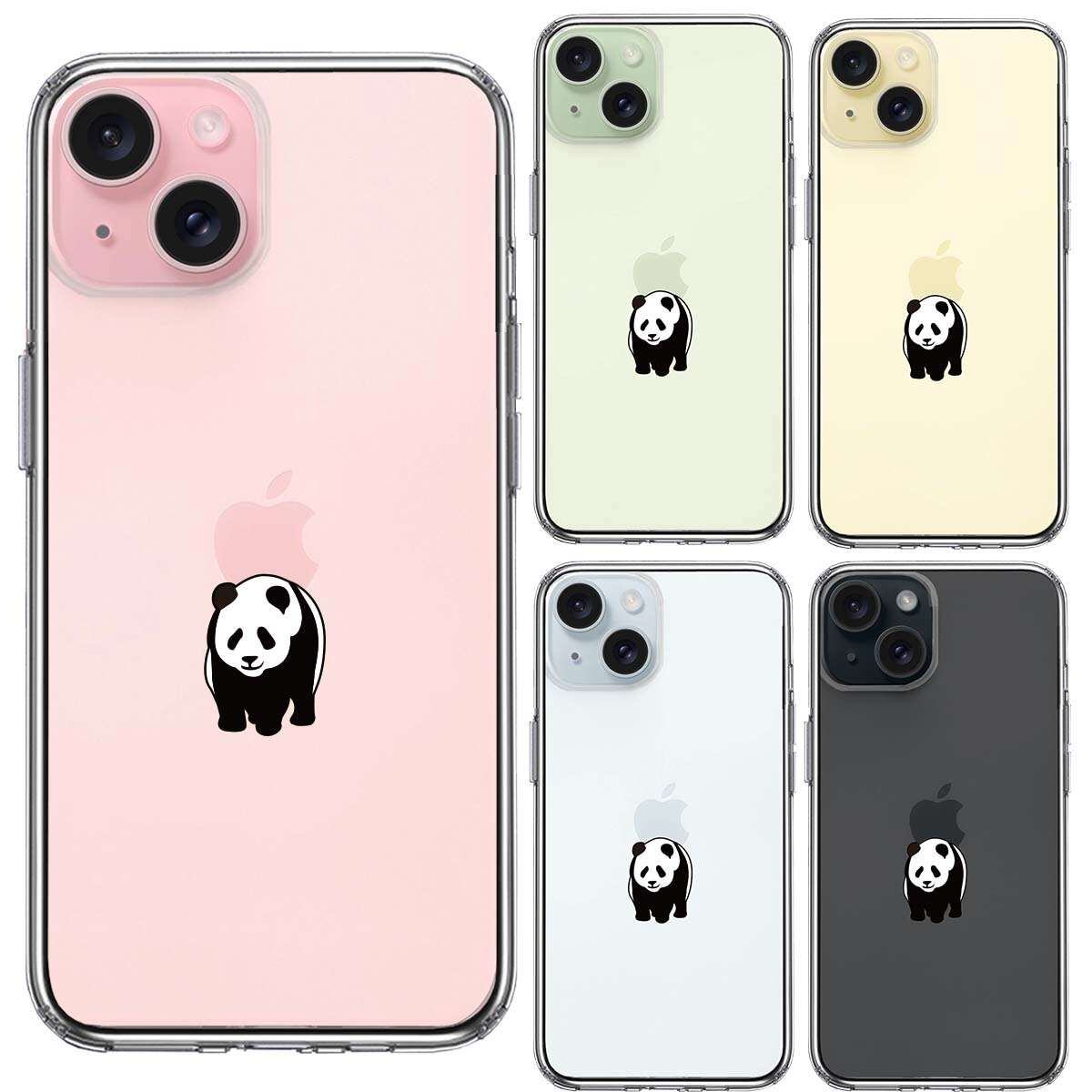 iPhone15 側面ソフト 背面ハード ハイブリッド クリア ケース パンダ りんご おんぶ