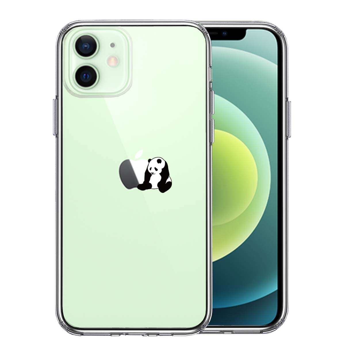 iPhone12 側面ソフト 背面ハード ハイブリッド クリア ケース パンダ りんごにもたれる