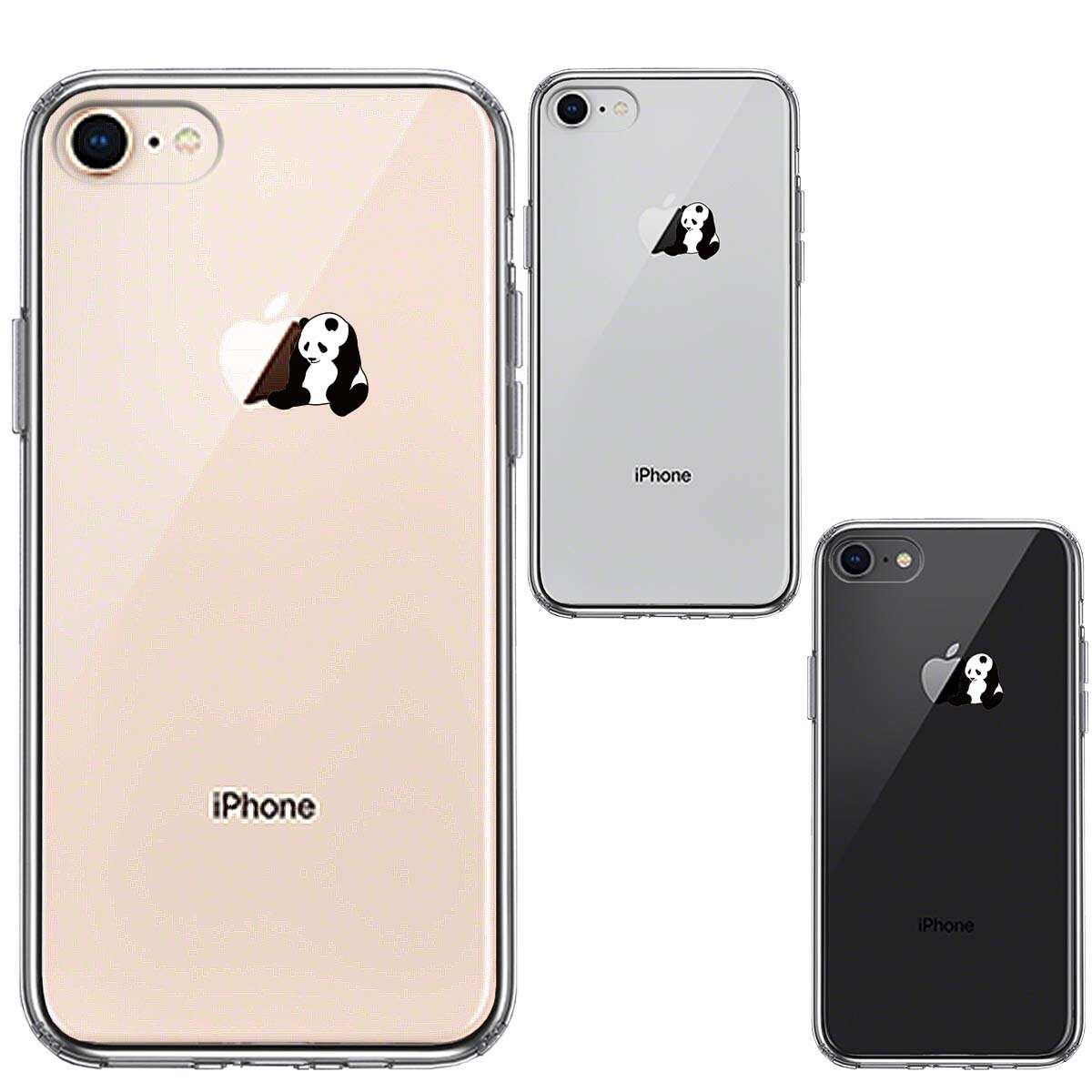 iPhone8 側面ソフト 背面ハード ハイブリッド クリア ケース パンダ りんごにもたれる
