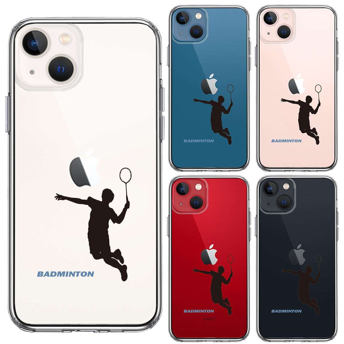 iPhone13mini 側面ソフト 背面ハード ハイブリッド クリア ケース バドミントン スマッシュ