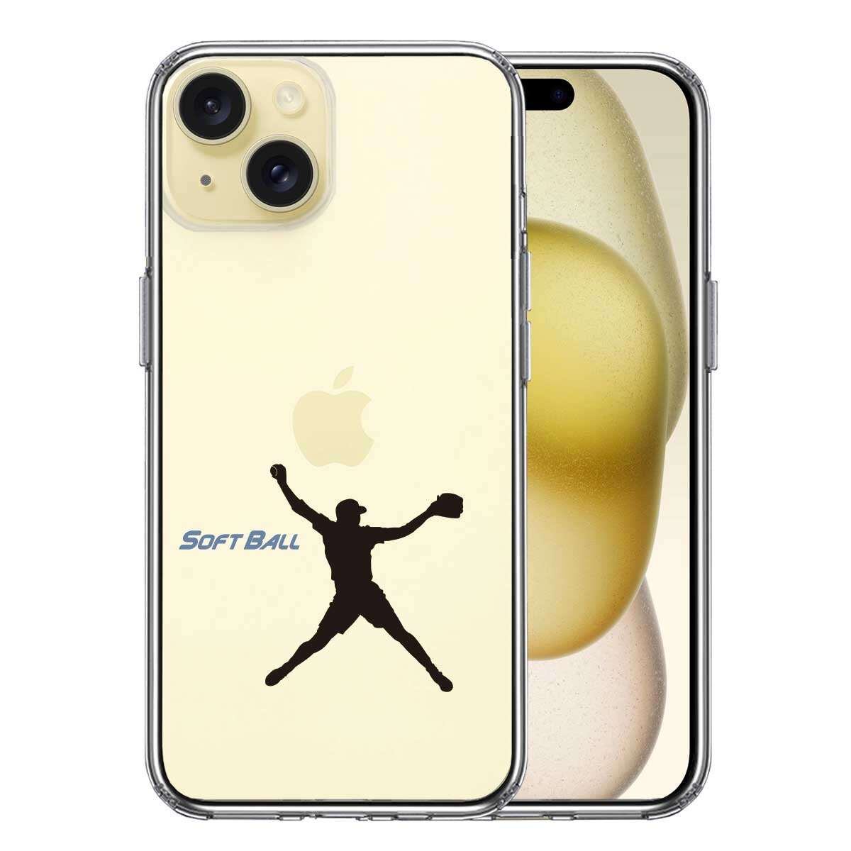 iPhone 15 Plus 側面ソフト 背面ハード ハイブリッド クリア ケース ソフトボール ピッチャー