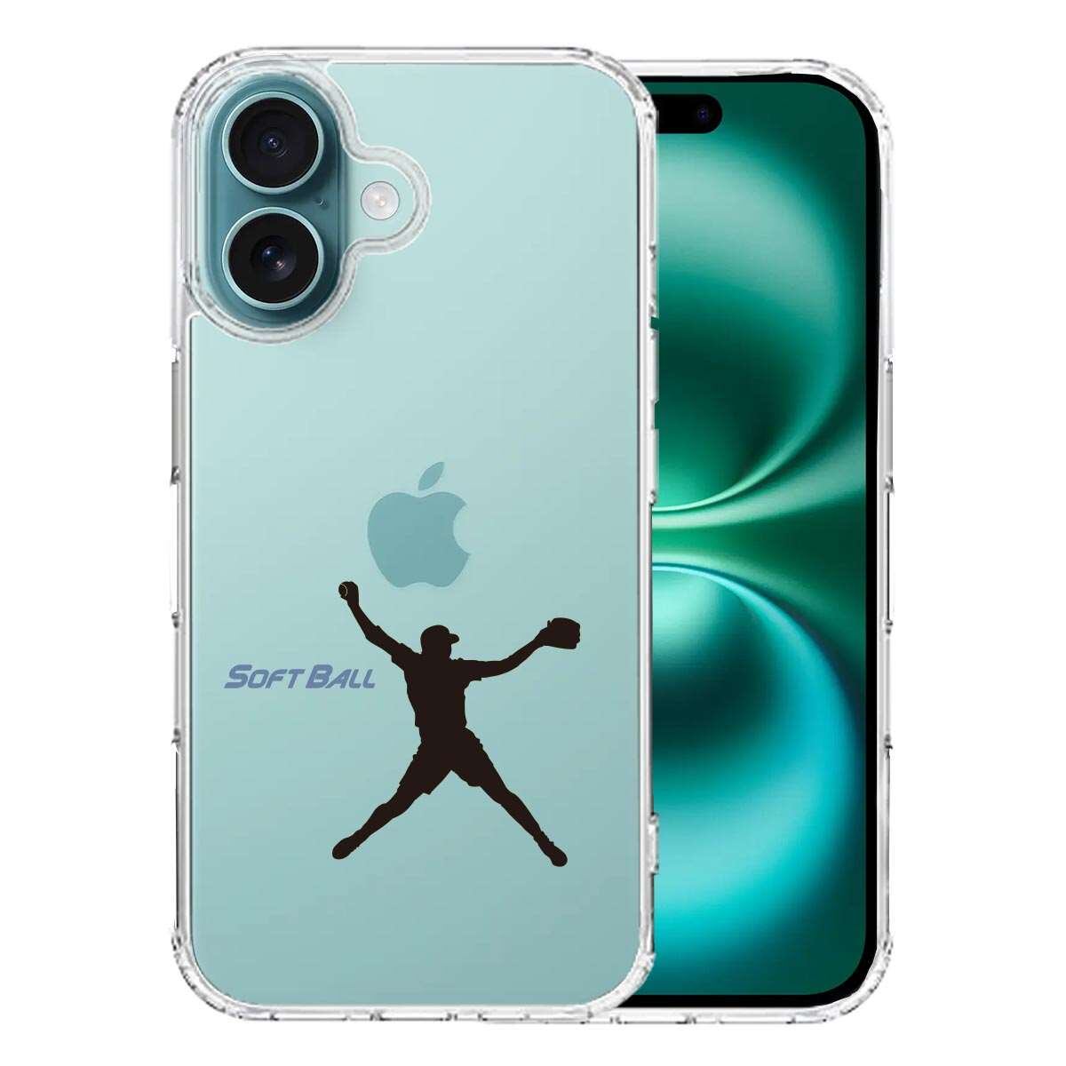 iPhone16 側面ソフト 背面ハード ハイブリッド クリア ケース ソフトボール ピッチャー