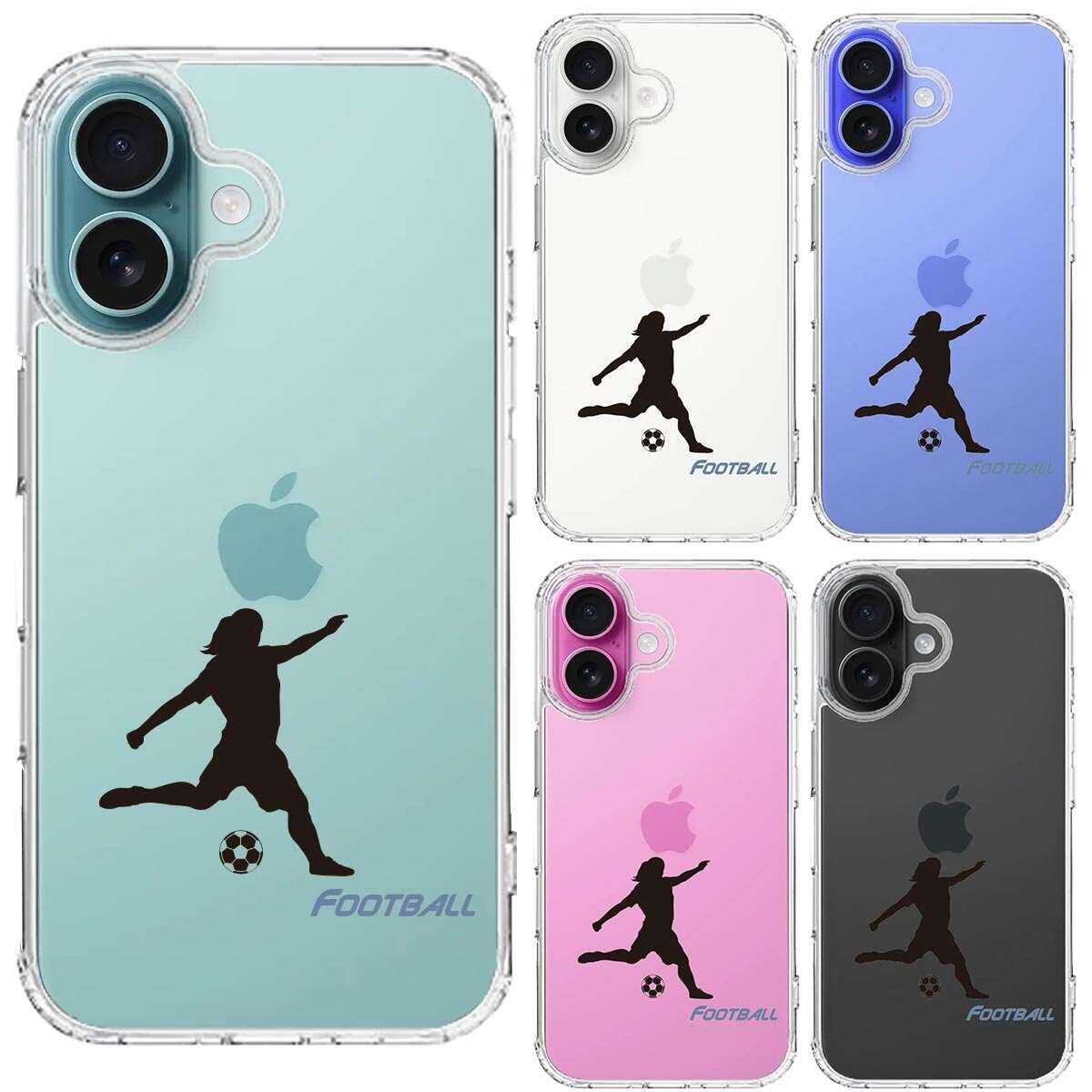 iPhone16 側面ソフト 背面ハード ハイブリッド クリア ケース サッカー 女子