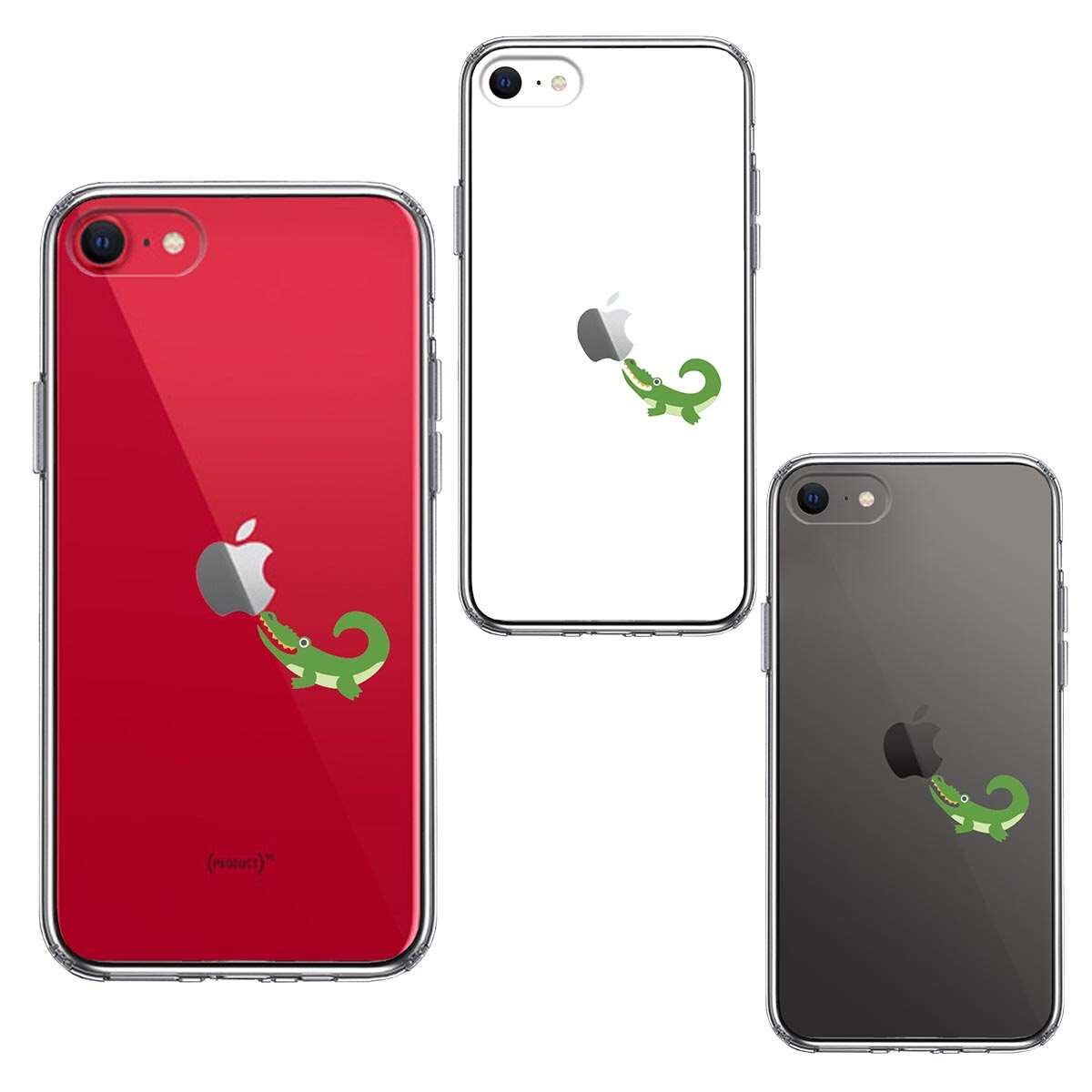 iPhoneSE(第3 第2世代) 側面ソフト 背面ハード ハイブリッド クリア ケース ワニ 鰐 爬虫類 2