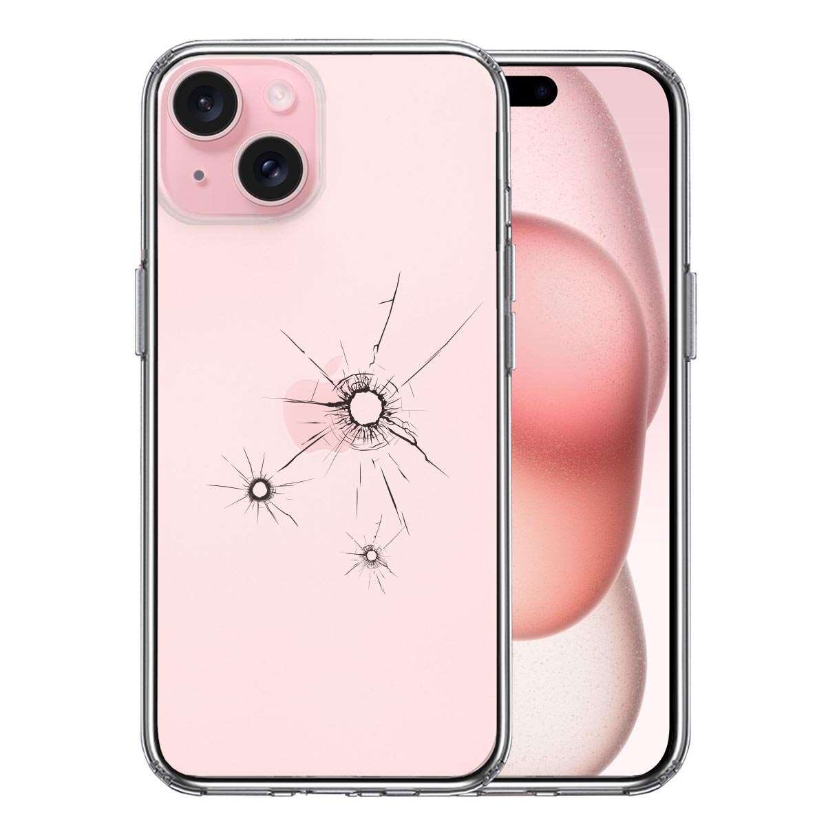 iPhone15 側面ソフト 背面ハード ハイブリッド クリア ケース 銃の弾痕 2