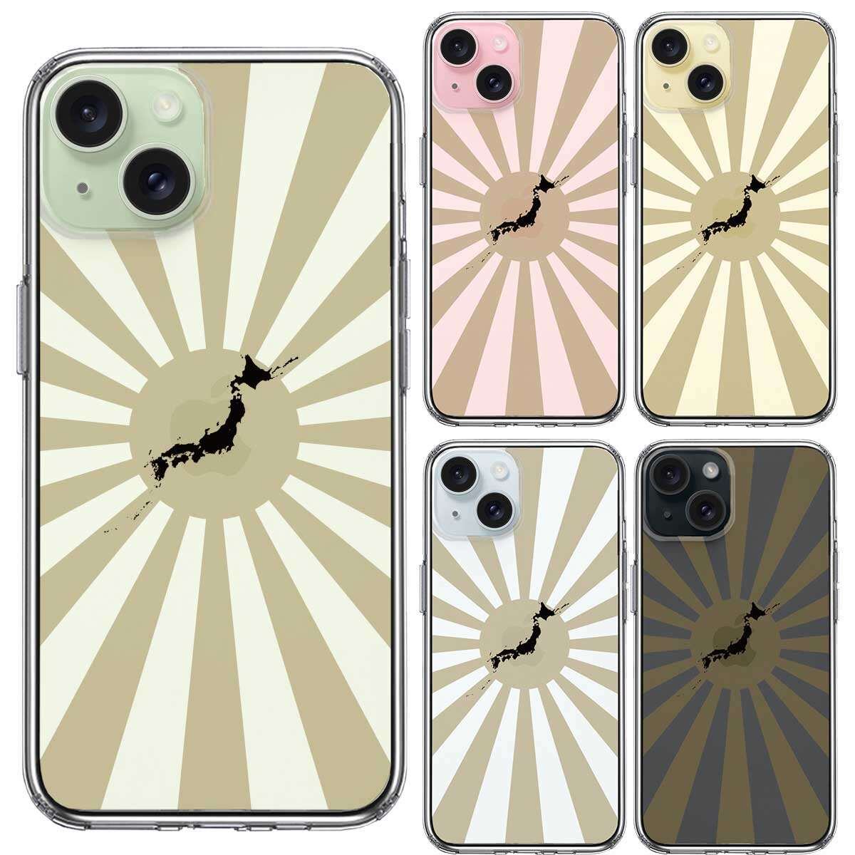 iPhone15 側面ソフト 背面ハード ハイブリッド クリア ケース 旭日旗 太陽 日本地図付