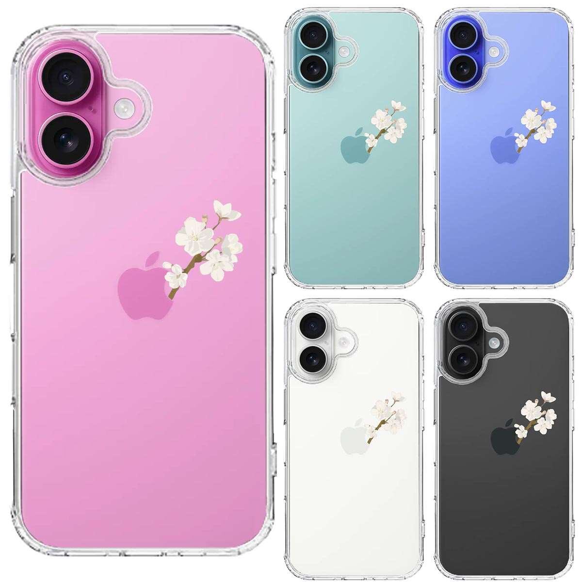 iPhone16 側面ソフト 背面ハード ハイブリッド クリア ケース りんご に 桜