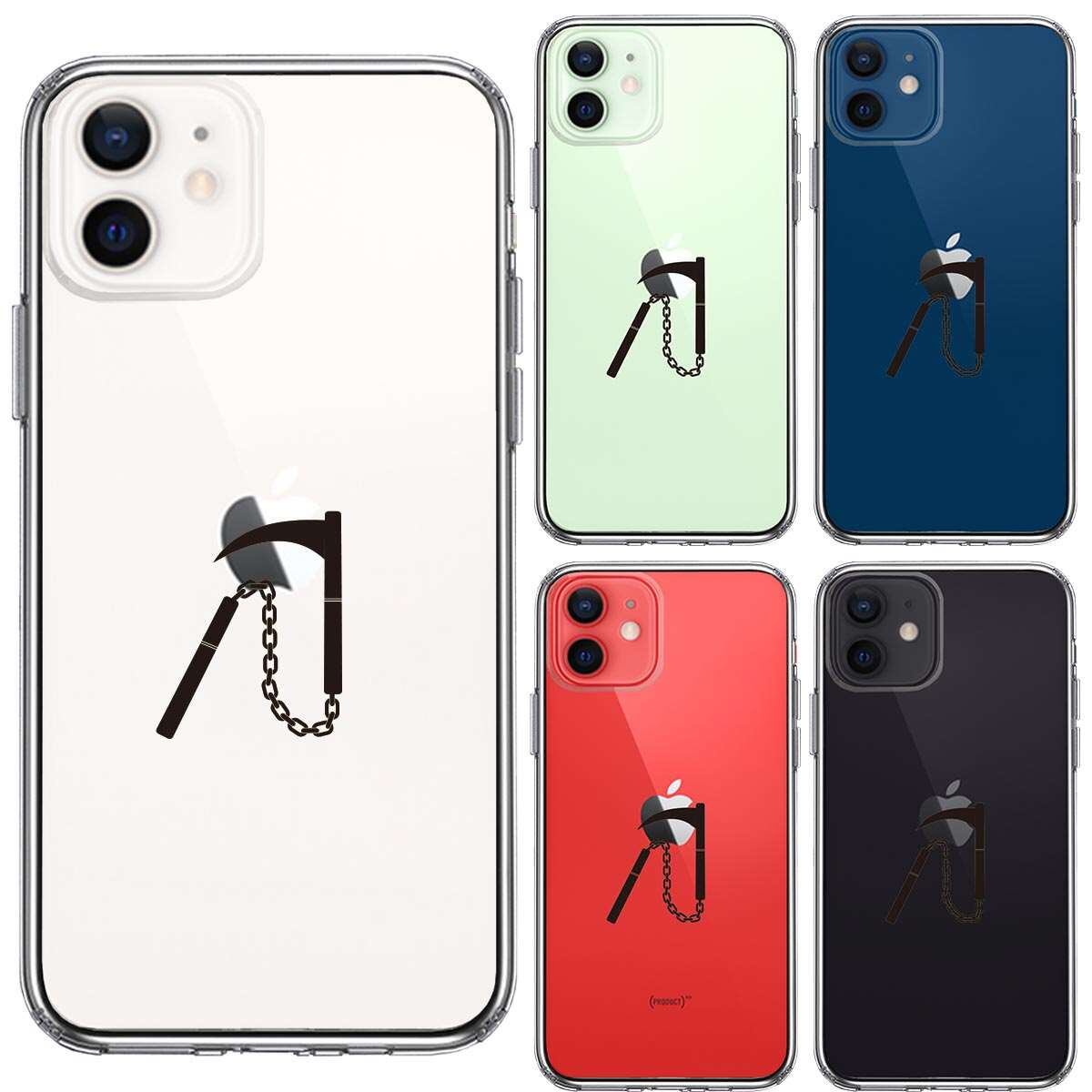 iPhone12mini 側面ソフト 背面ハード ハイブリッド クリア ケース 忍者 武器 鎖釜