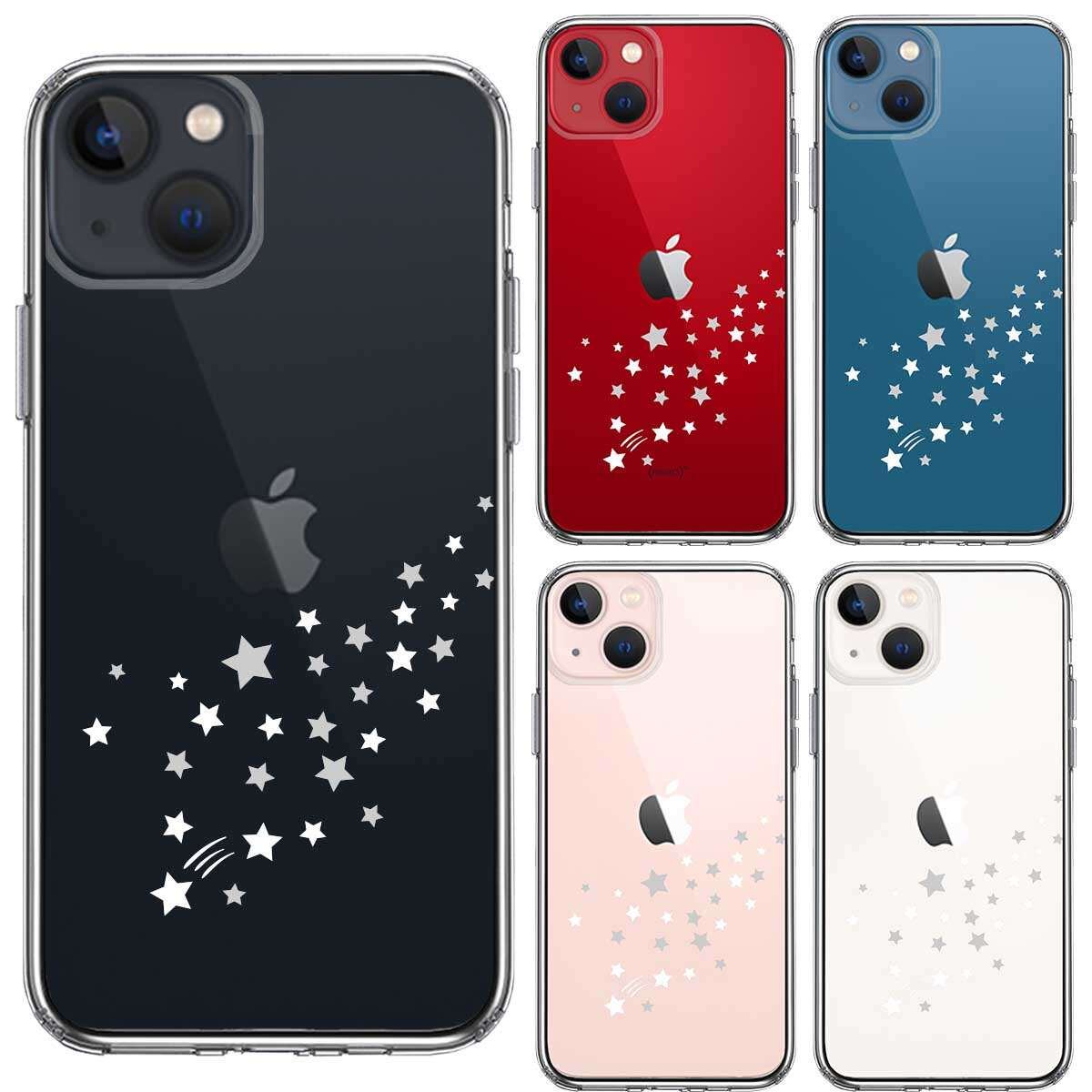 iPhone13 側面ソフト 背面ハード ハイブリッド クリア ケース 流れ星 ホワイト
