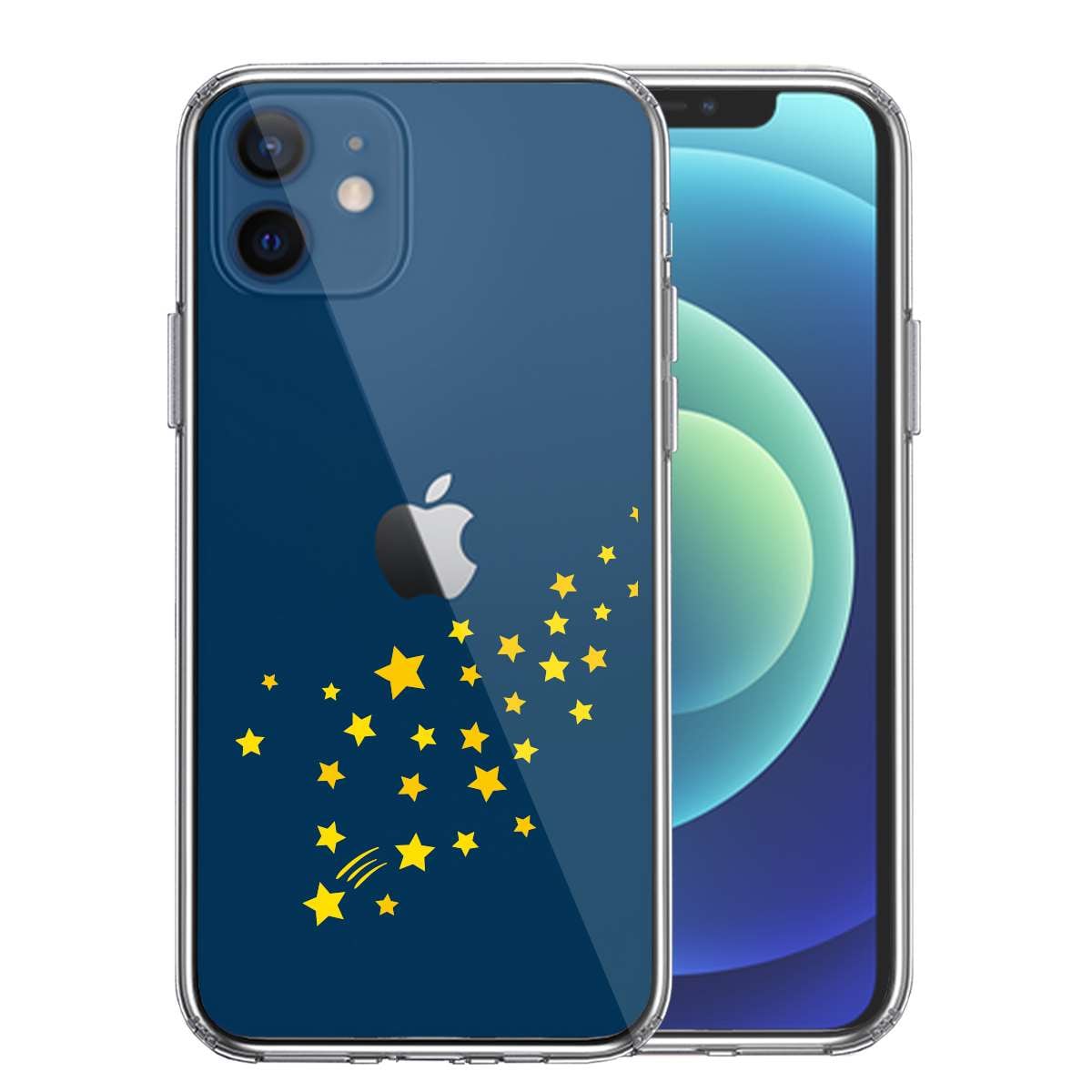 iPhone12 側面ソフト 背面ハード ハイブリッド クリア ケース 流れ星 イエロー
