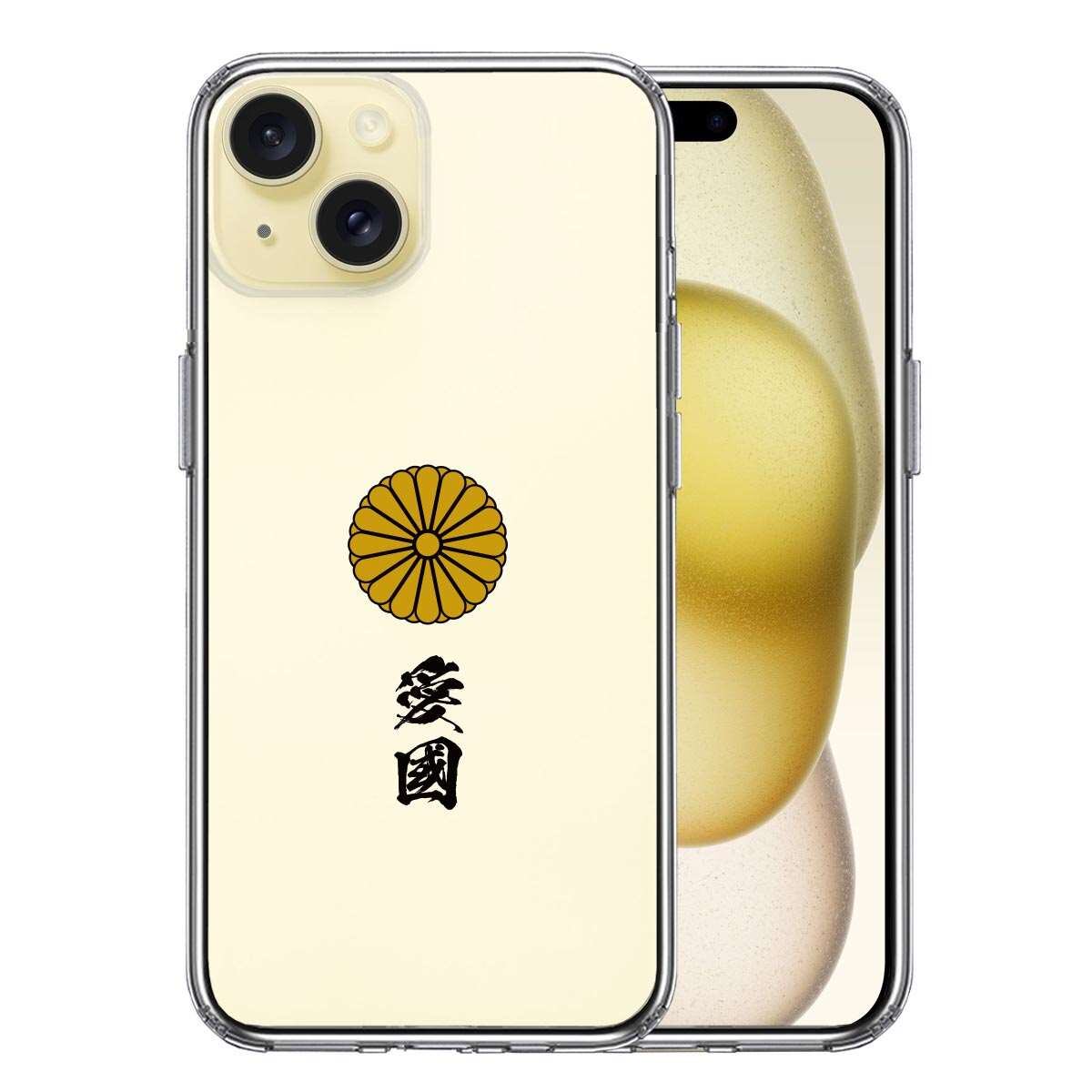iPhone 15 Plus 側面ソフト 背面ハード ハイブリッド クリア ケース 菊花紋 十六花弁 愛國
