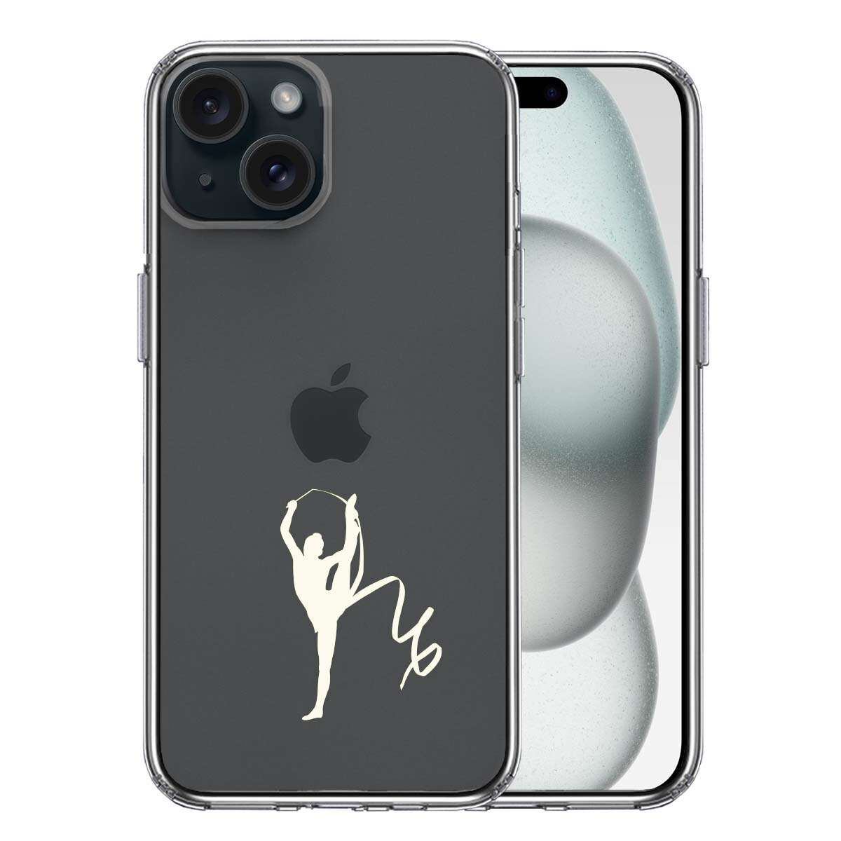 iPhone 15 Plus 側面ソフト 背面ハード ハイブリッド クリア ケース 新体操 リボン ホワイト