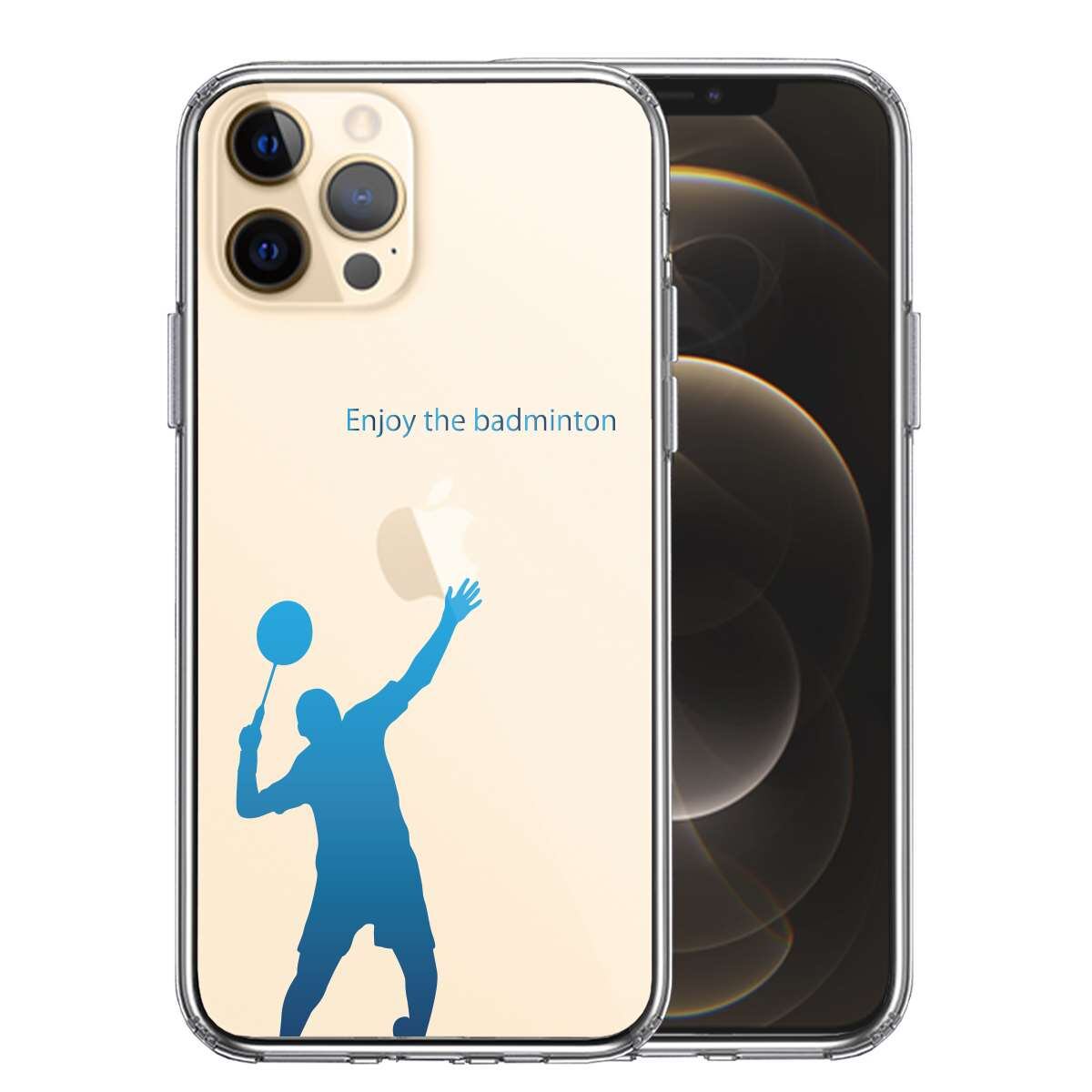 iPhone12 Pro 側面ソフト 背面ハード ハイブリッド クリア ケース バドミントン ブルー