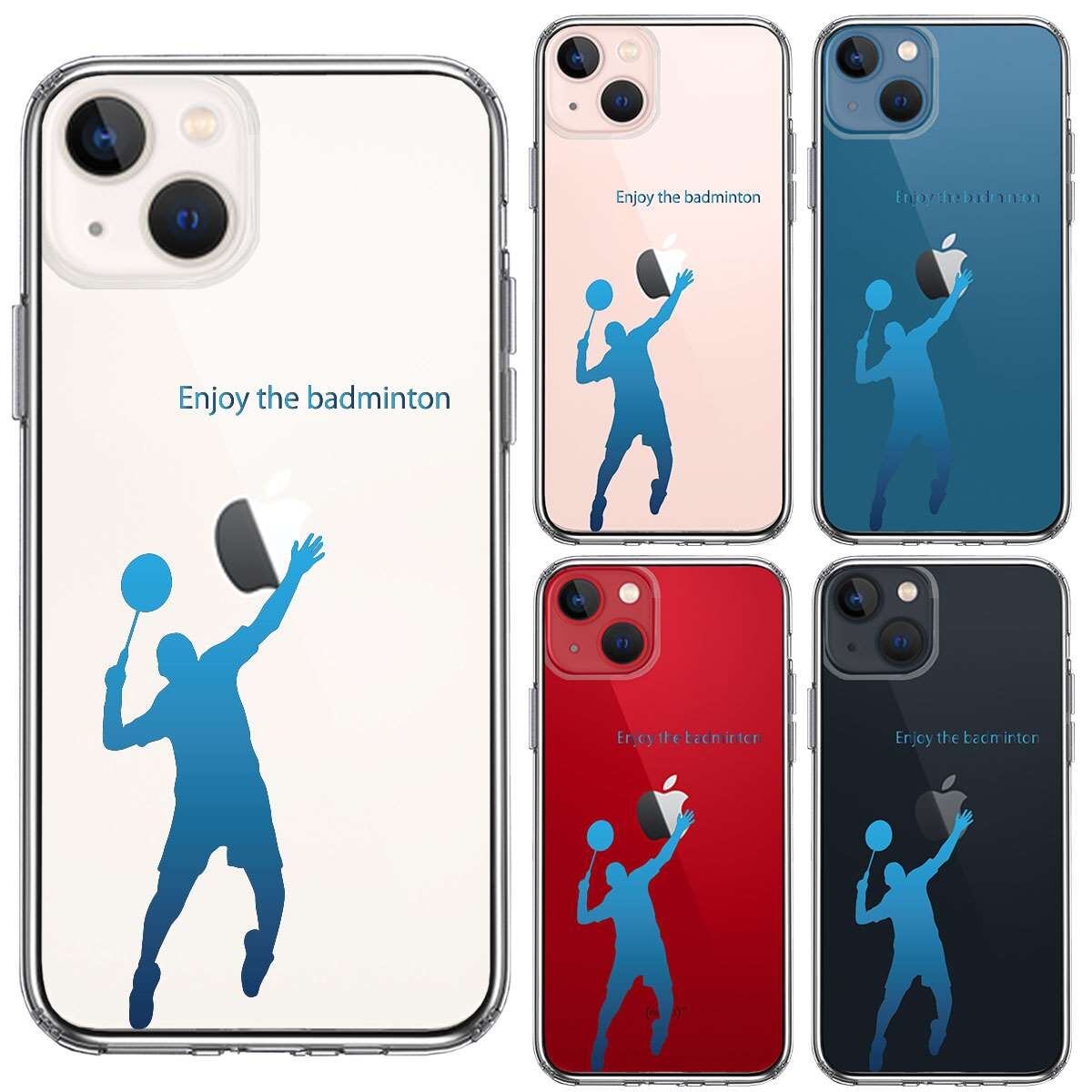 iPhone13mini 側面ソフト 背面ハード ハイブリッド クリア ケース バドミントン ブルー