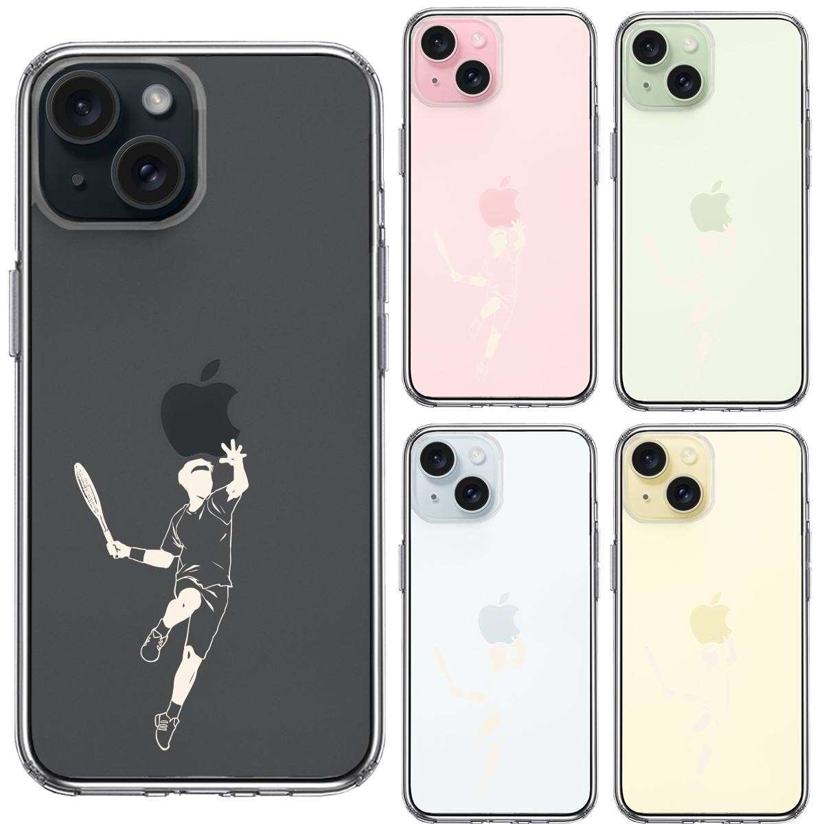 iPhone15 側面ソフト 背面ハード ハイブリッド クリア ケース テニス ホワイト