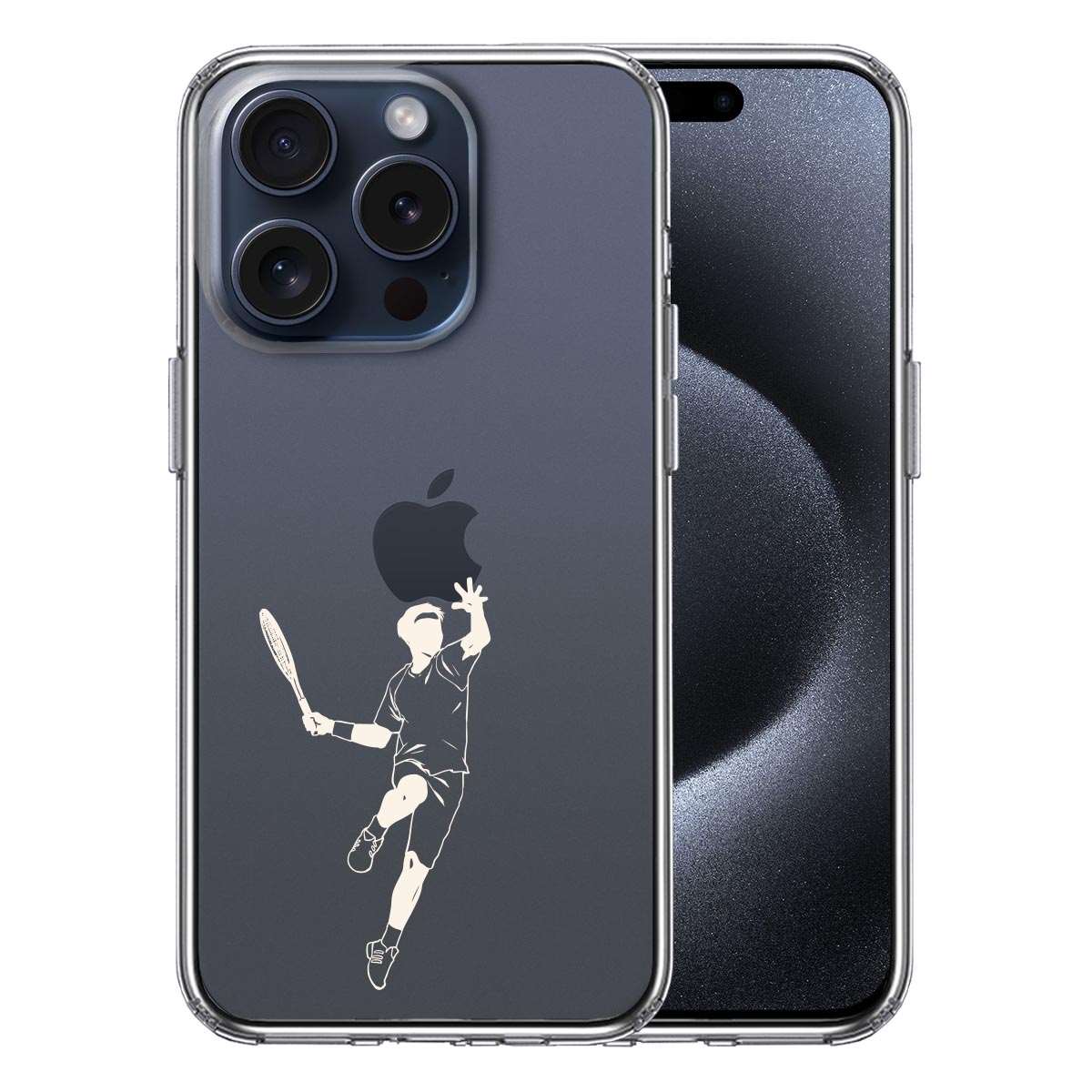 iPhone15 Pro 側面ソフト 背面ハード ハイブリッド クリア ケース テニス ホワイト