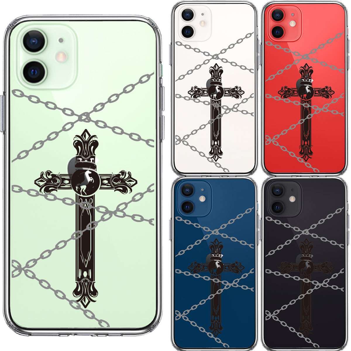 iPhone12mini 側面ソフト 背面ハード ハイブリッド クリア ケース クロス &チェーン