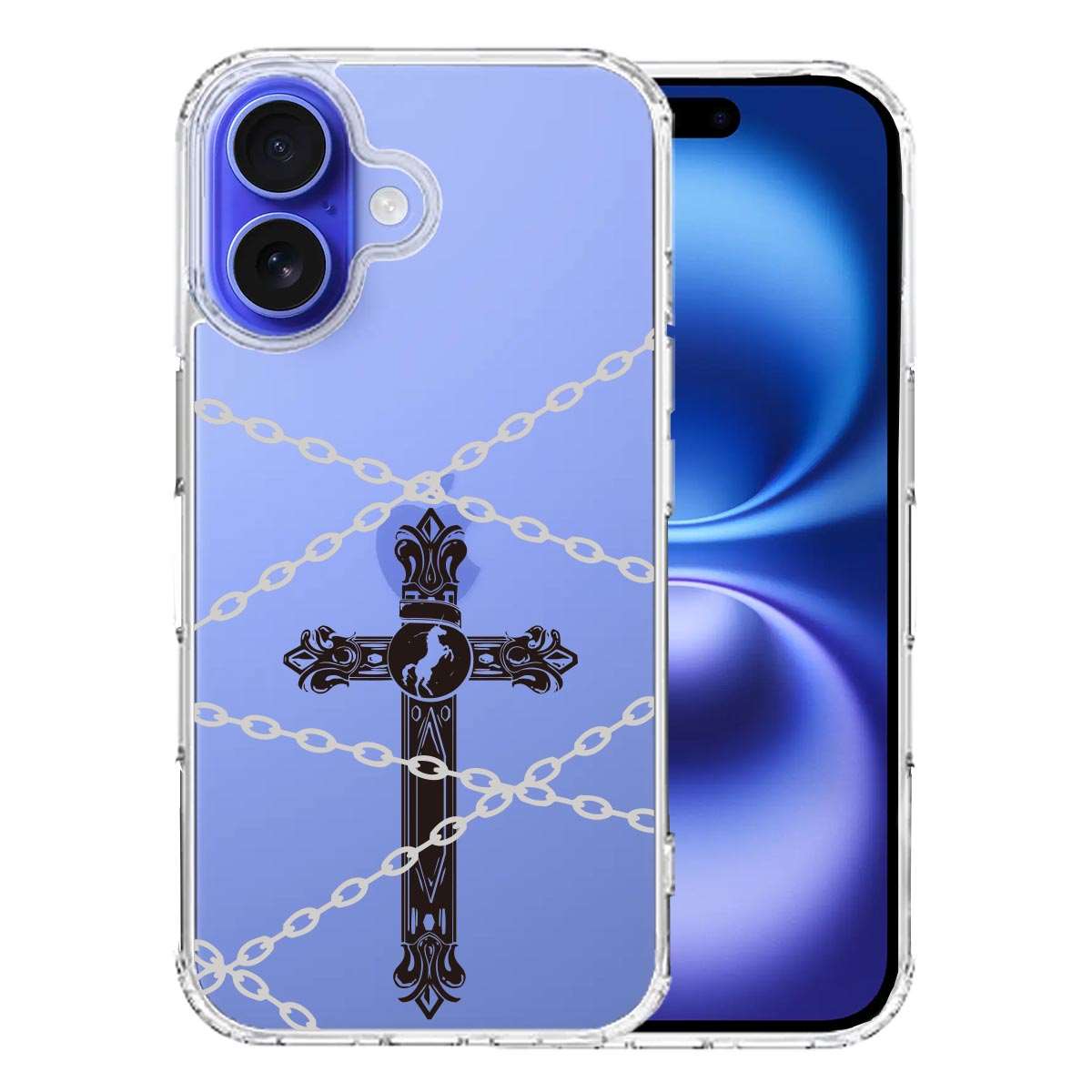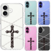iPhone16 側面ソフト 背面ハード ハイブリッド クリア ケース クロス &チェーン