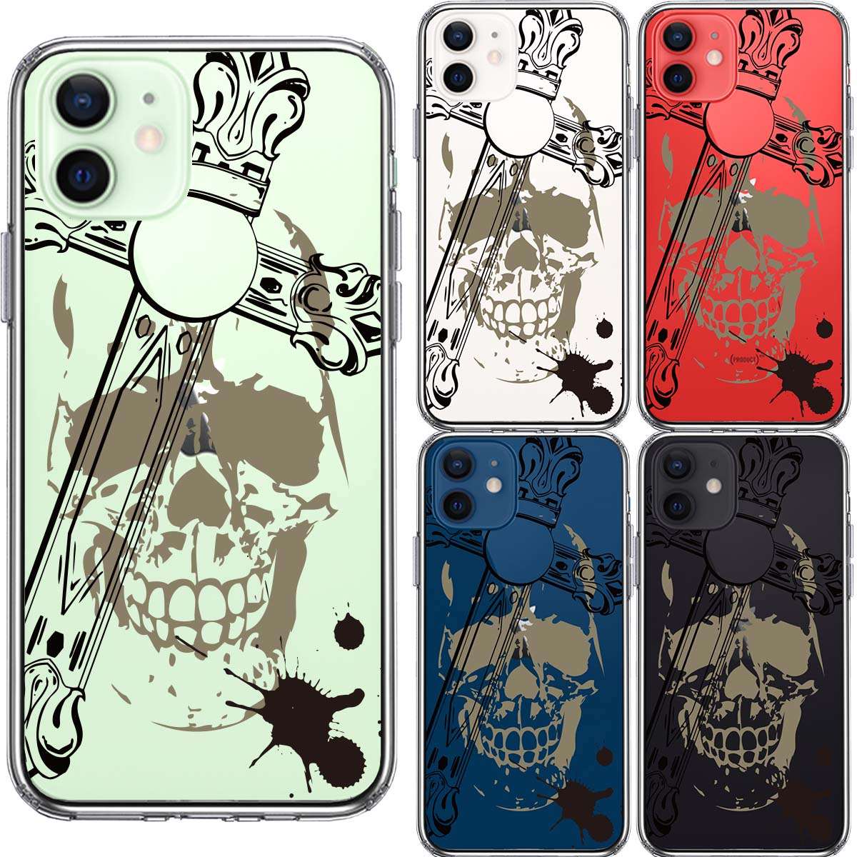 iPhone12 側面ソフト 背面ハード ハイブリッド クリア ケース クロス &スカル