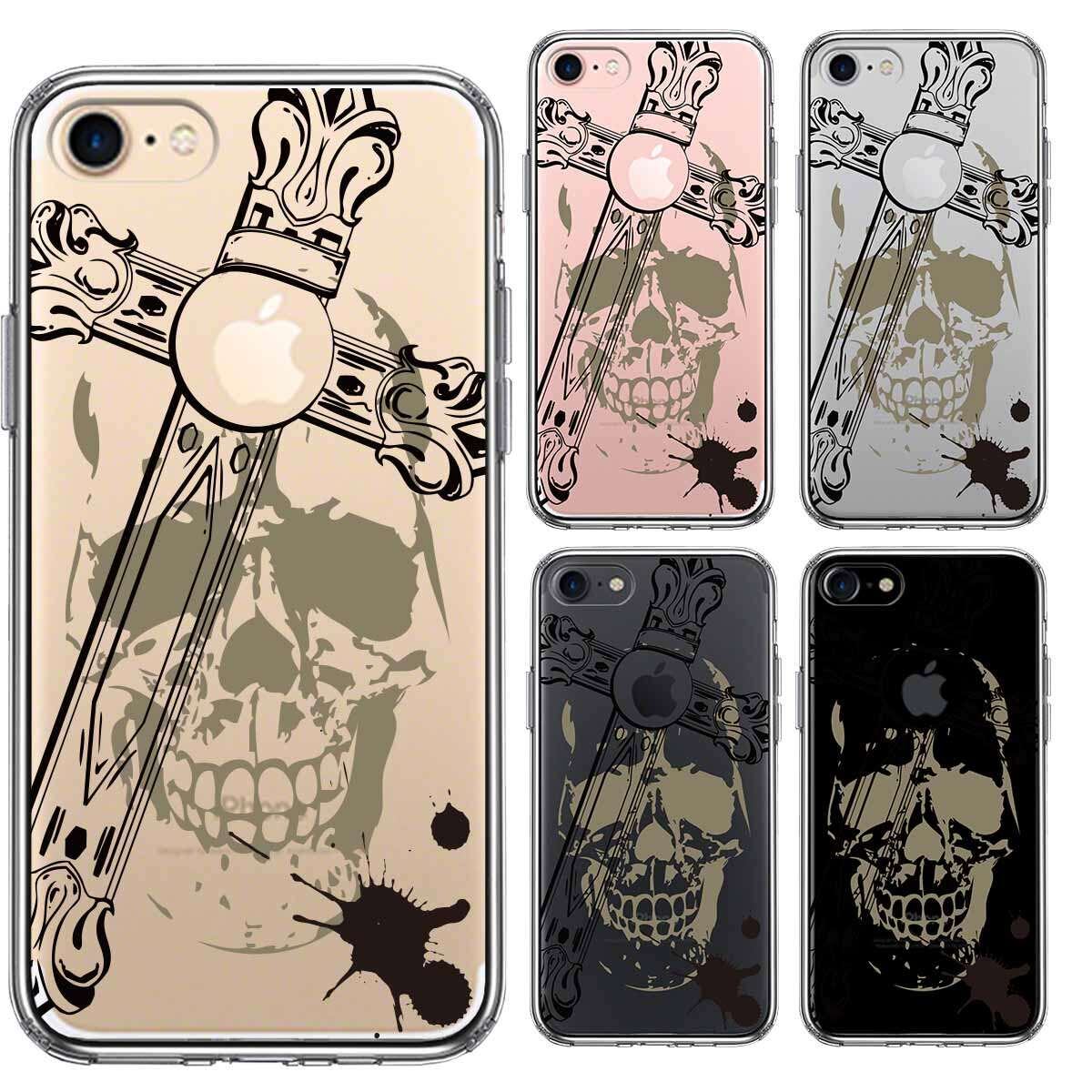 iPhone7 側面ソフト 背面ハード ハイブリッド クリア ケース クロス &スカル