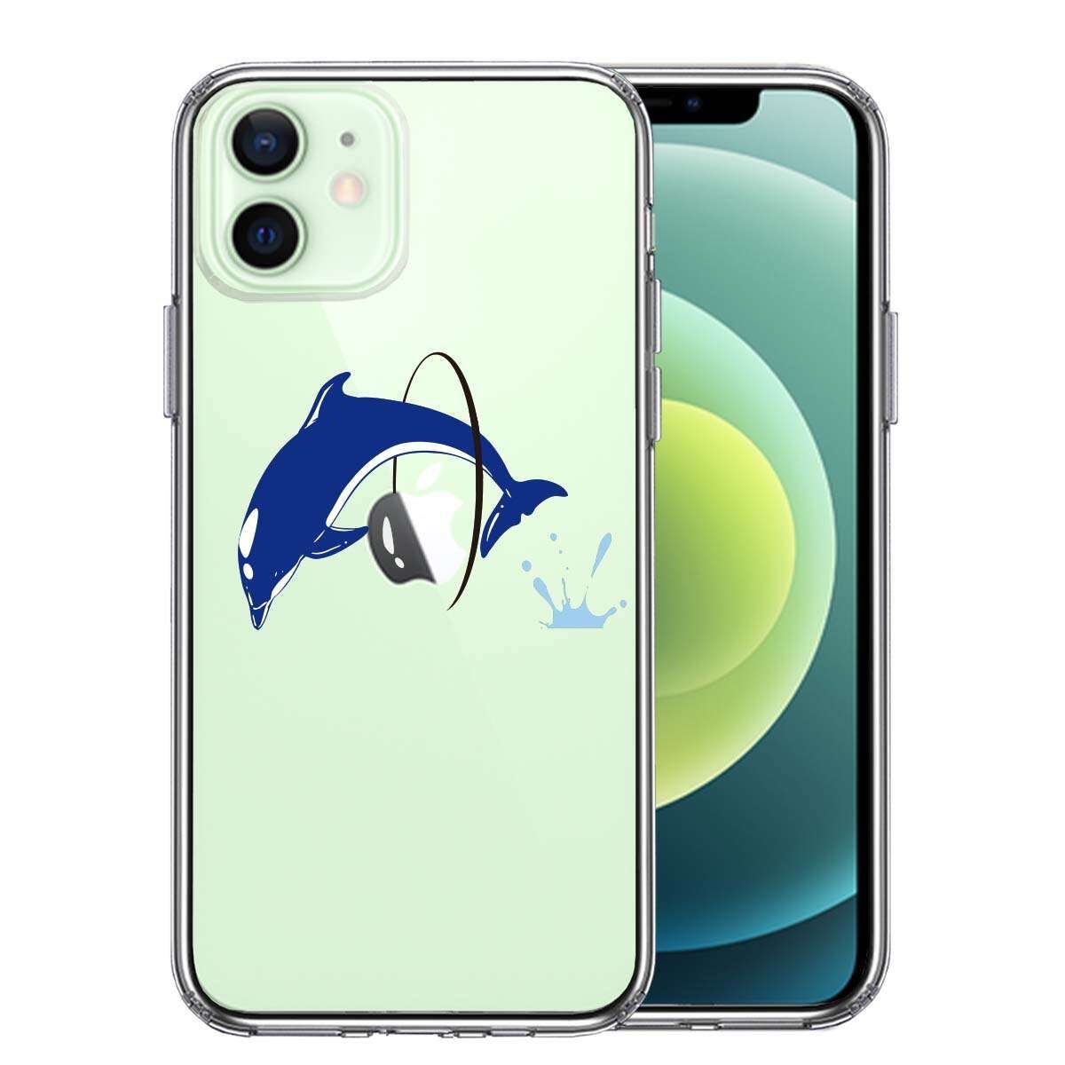 iPhone12 側面ソフト 背面ハード ハイブリッド クリア ケース ドルフィン イルカ 輪くぐり