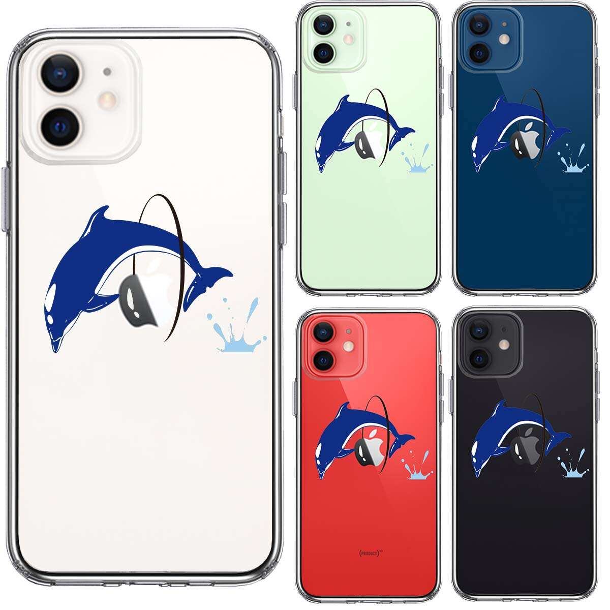 iPhone12mini 側面ソフト 背面ハード ハイブリッド クリア ケース ドルフィン イルカ 輪くぐり