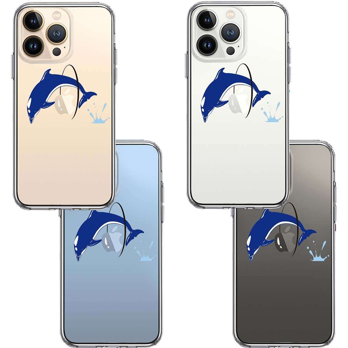 iPhone13 Pro 側面ソフト 背面ハード ハイブリッド クリア ケース ドルフィン イルカ 輪くぐり
