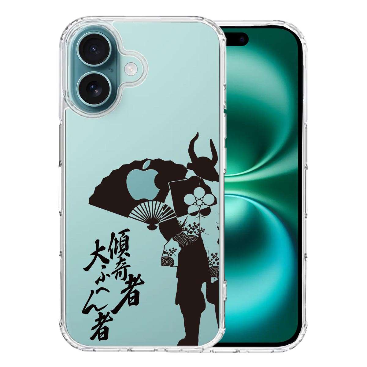 iPhone16 側面ソフト 背面ハード ハイブリッド クリア ケース 前田慶次 扇子 傾奇者