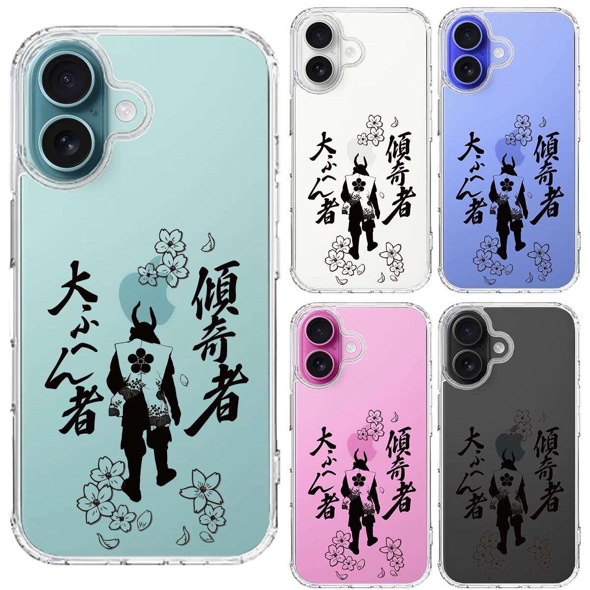 iPhone16 側面ソフト 背面ハード ハイブリッド クリア ケース 桜 武士 前田慶次