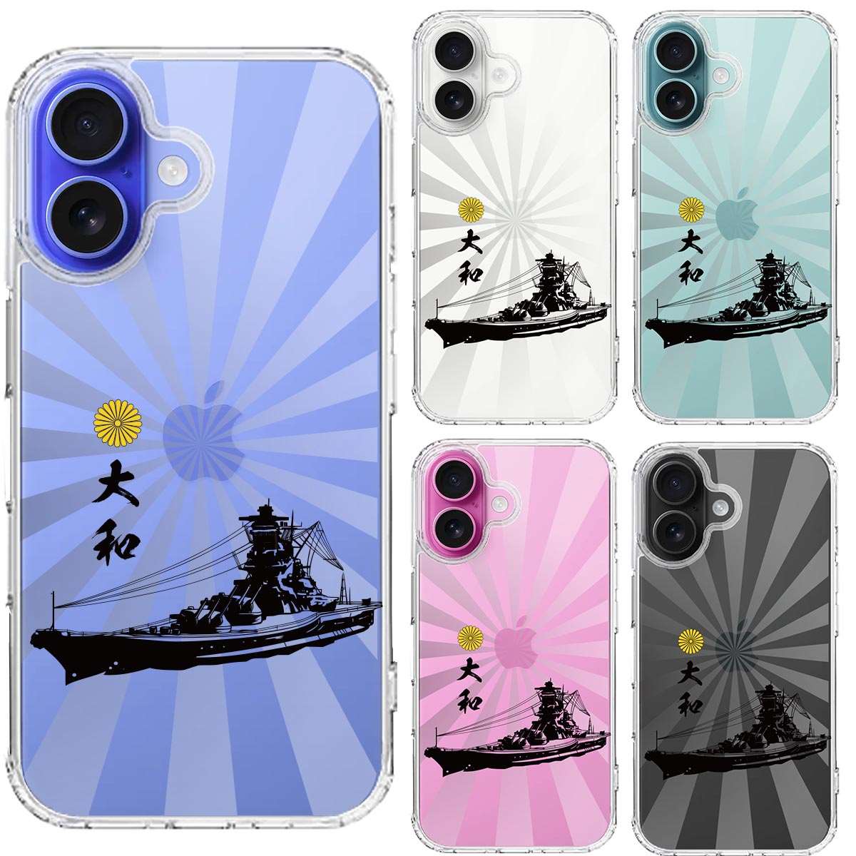iPhone16 側面ソフト 背面ハード ハイブリッド クリア ケース 大和 旭日 旭日旗