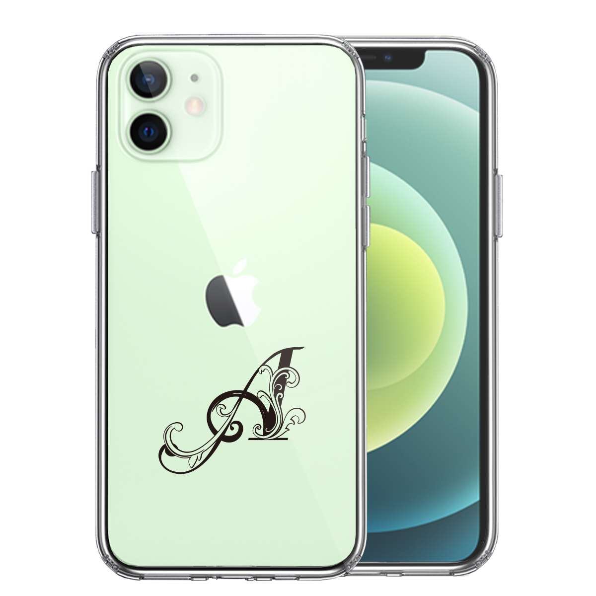iPhone12mini 側面ソフト 背面ハード ハイブリッド クリア ケース アルファベット 【A】