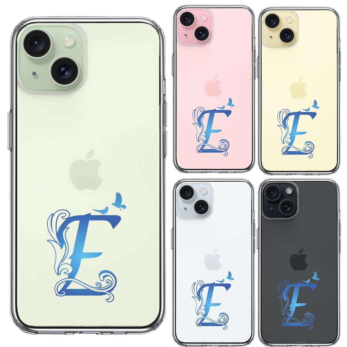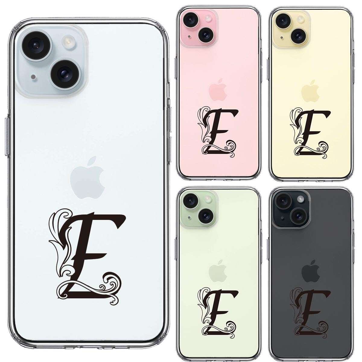 iPhone 15 Plus 側面ソフト 背面ハード ハイブリッド クリア ケース アルファベット 【E】