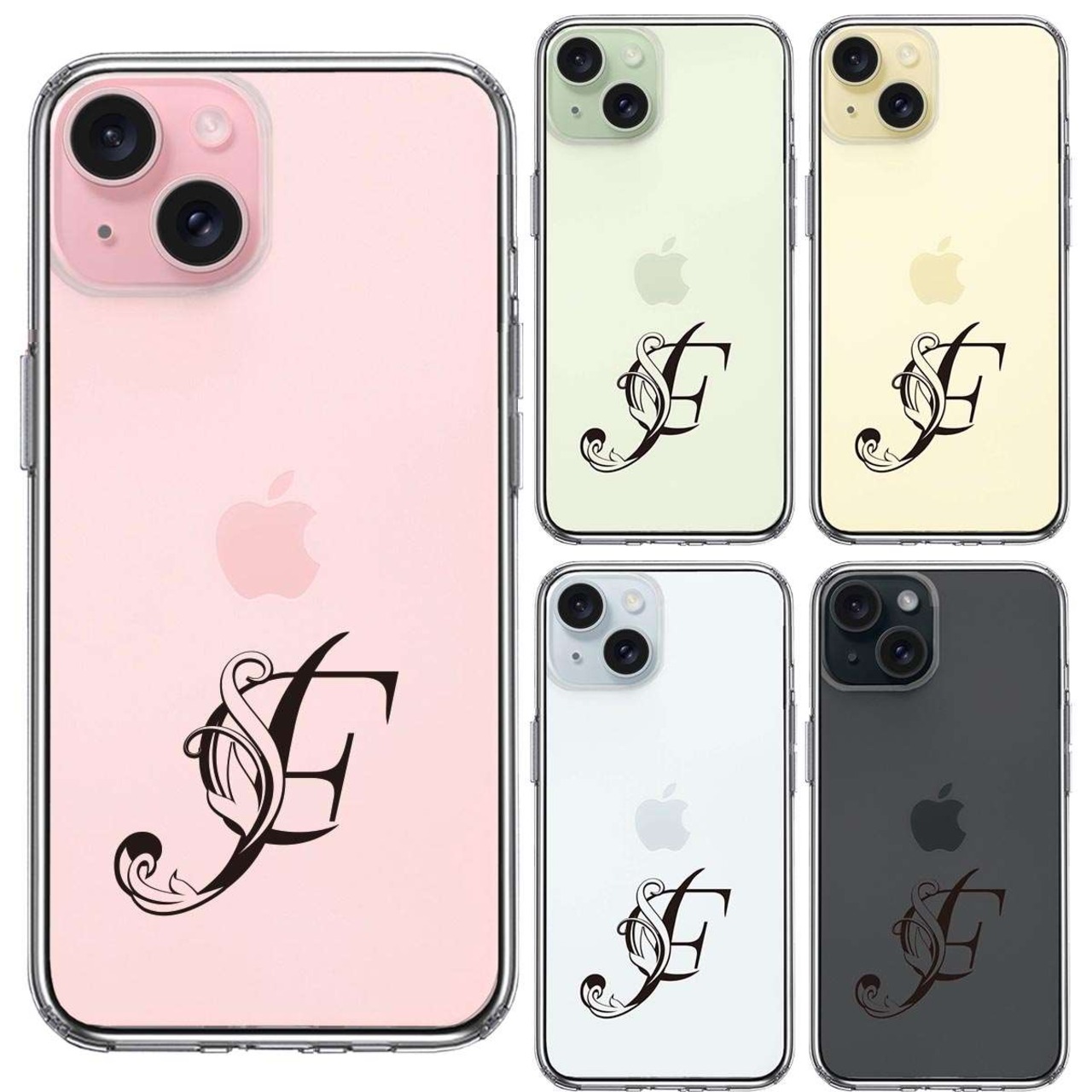 iPhone 15 Plus 側面ソフト 背面ハード ハイブリッド クリア ケース アルファベット 【F】