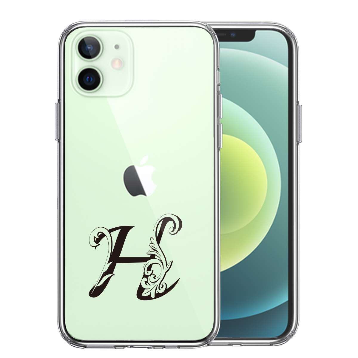 iPhone12mini 側面ソフト 背面ハード ハイブリッド クリア ケース アルファベット 【H】