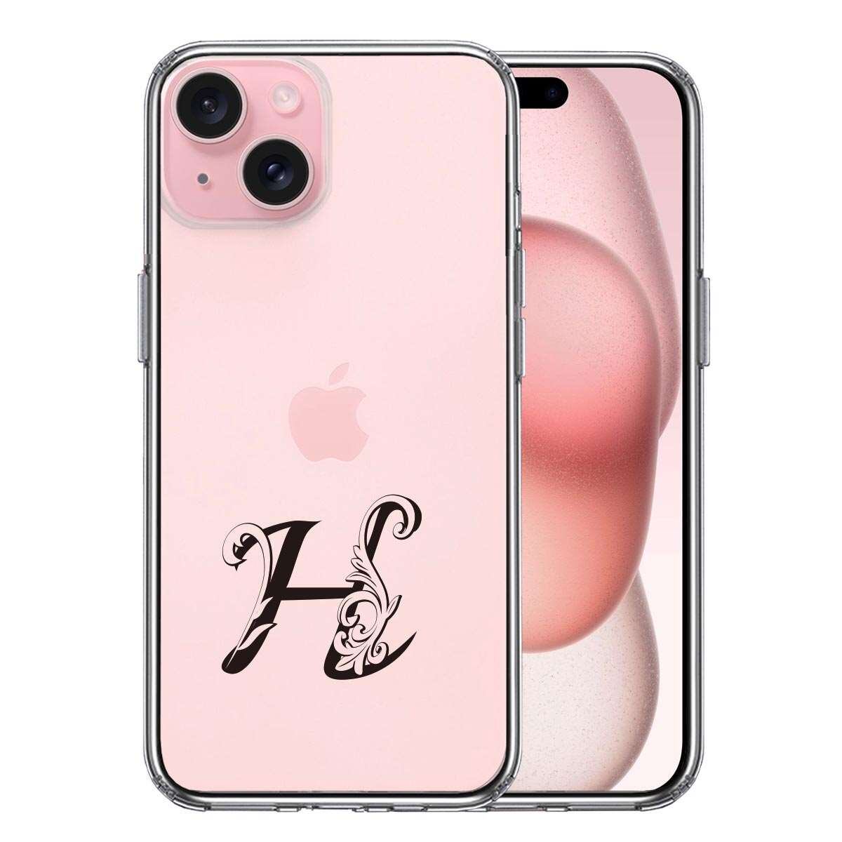 iPhone15 側面ソフト 背面ハード ハイブリッド クリア ケース アルファベット 【H】