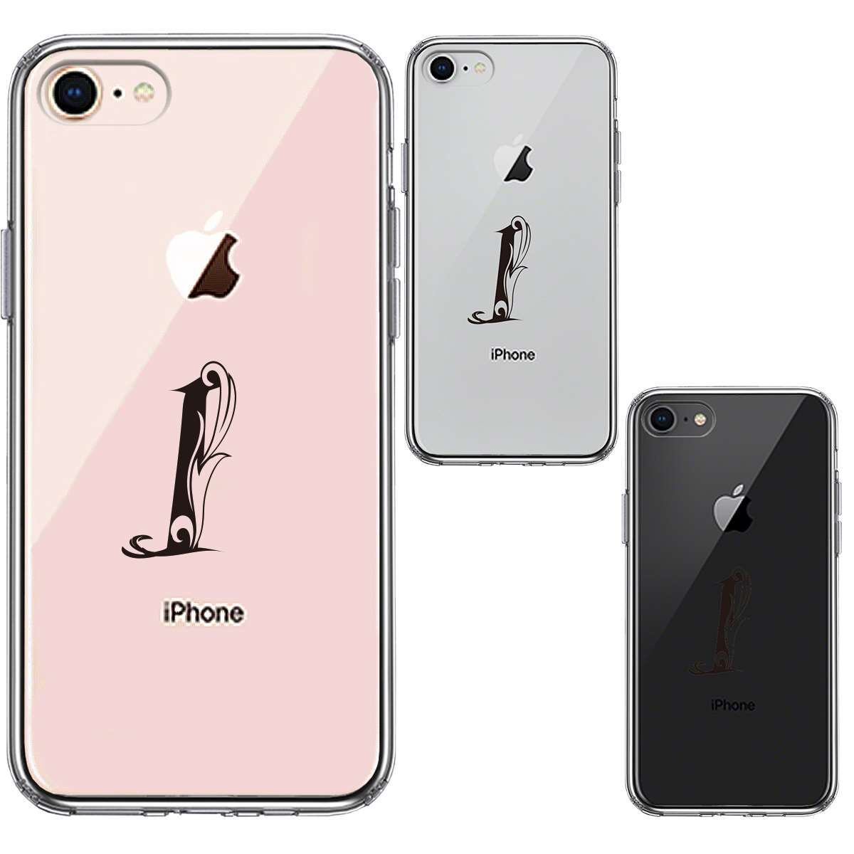 iPhone8 側面ソフト 背面ハード ハイブリッド クリア ケース アルファベット 【I】