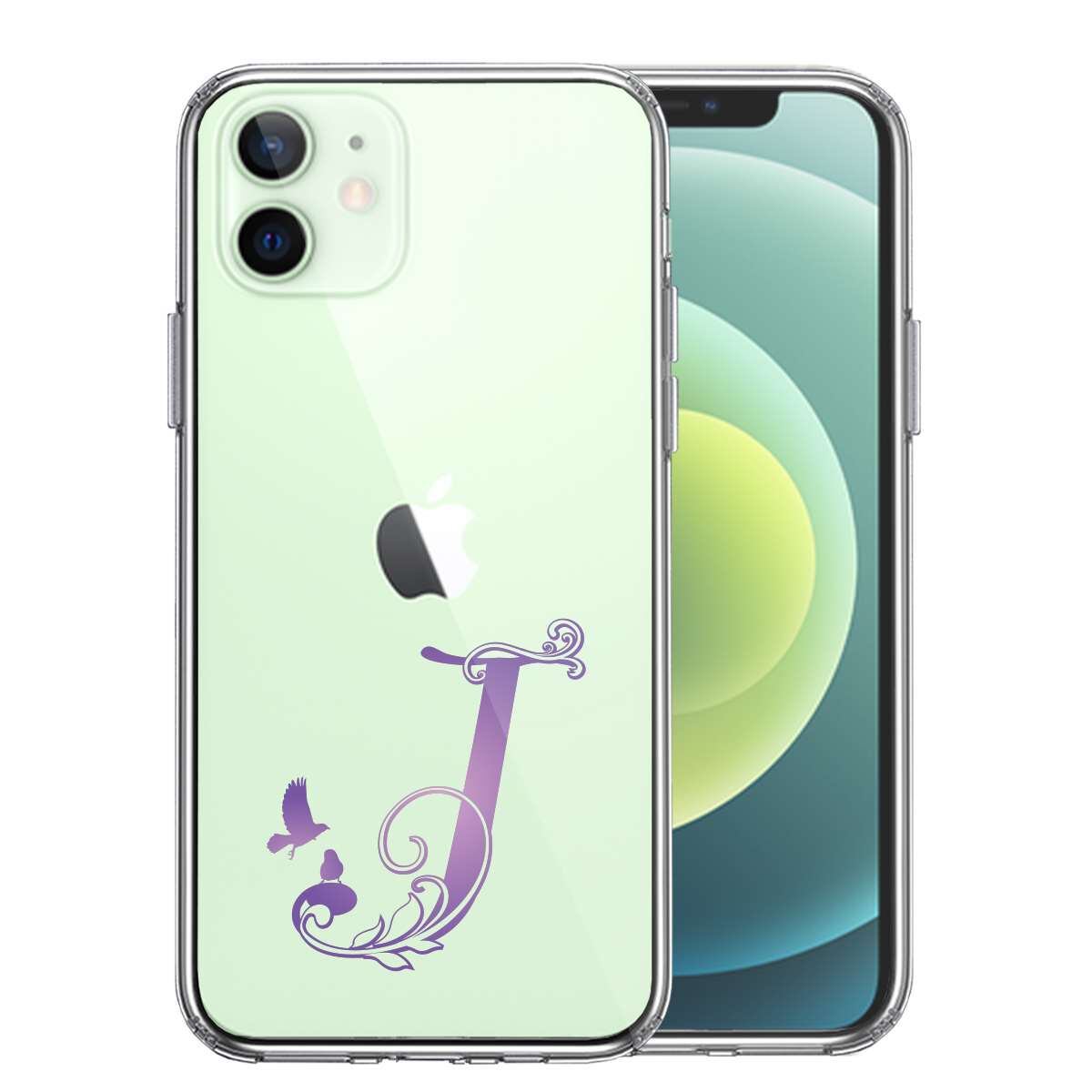iPhone12 側面ソフト 背面ハード ハイブリッド クリア ケース アルファベット 【J】