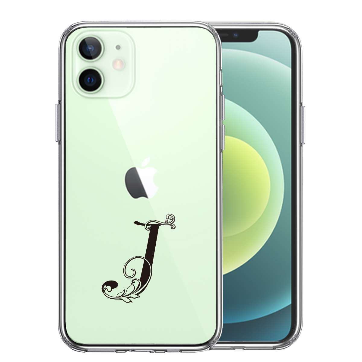 iPhone12mini 側面ソフト 背面ハード ハイブリッド クリア ケース アルファベット 【J】