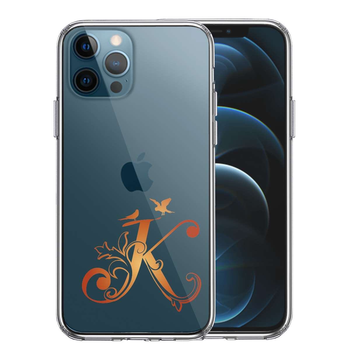 iPhone12 Pro 側面ソフト 背面ハード ハイブリッド クリア ケース アルファベット 【K】
