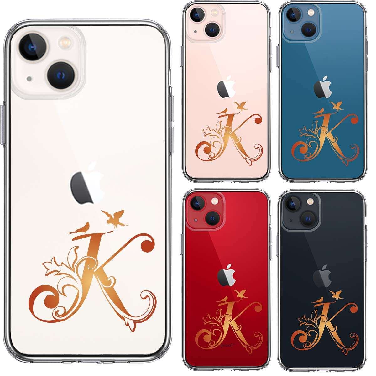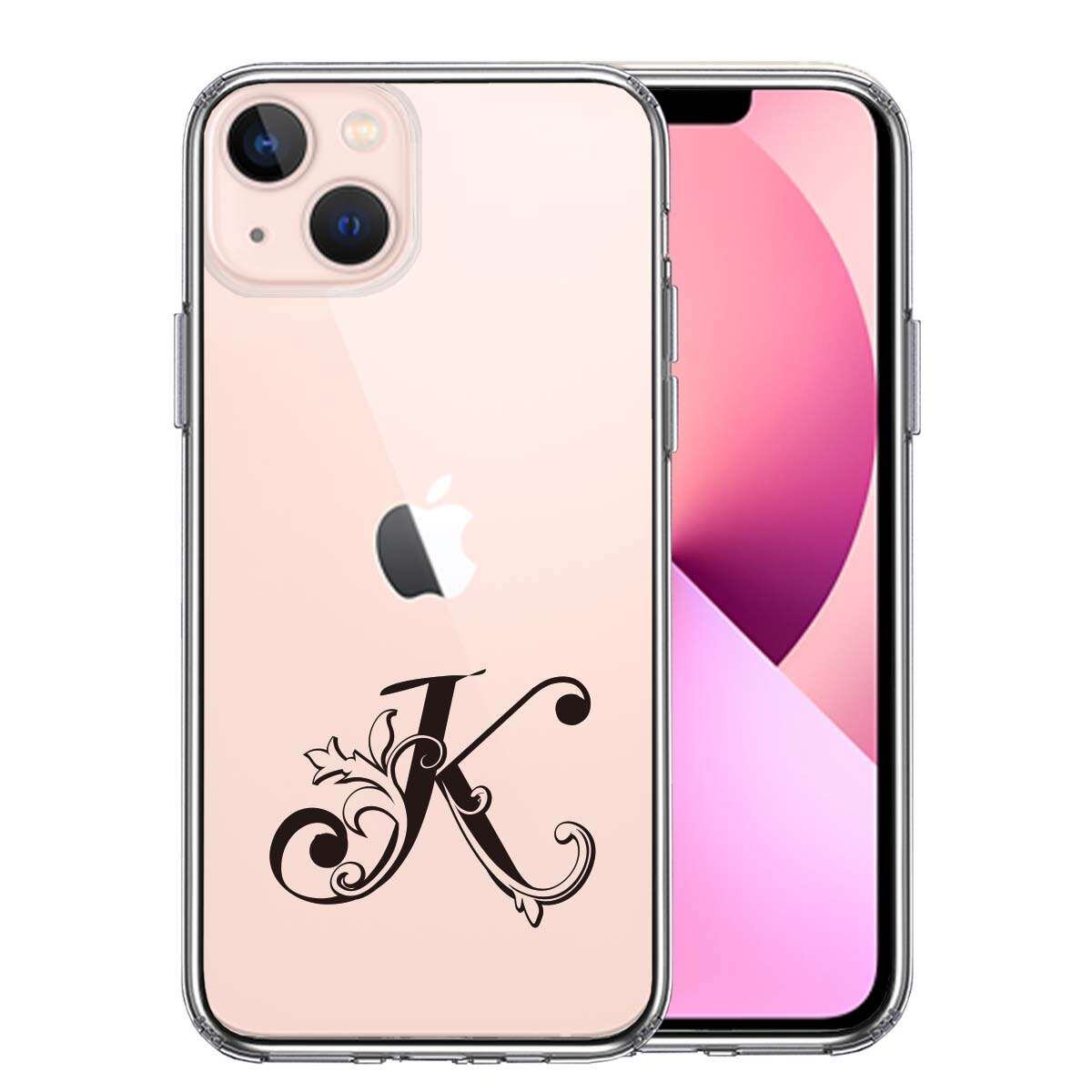 iPhone13mini 側面ソフト 背面ハード ハイブリッド クリア ケース アルファベット 【K】
