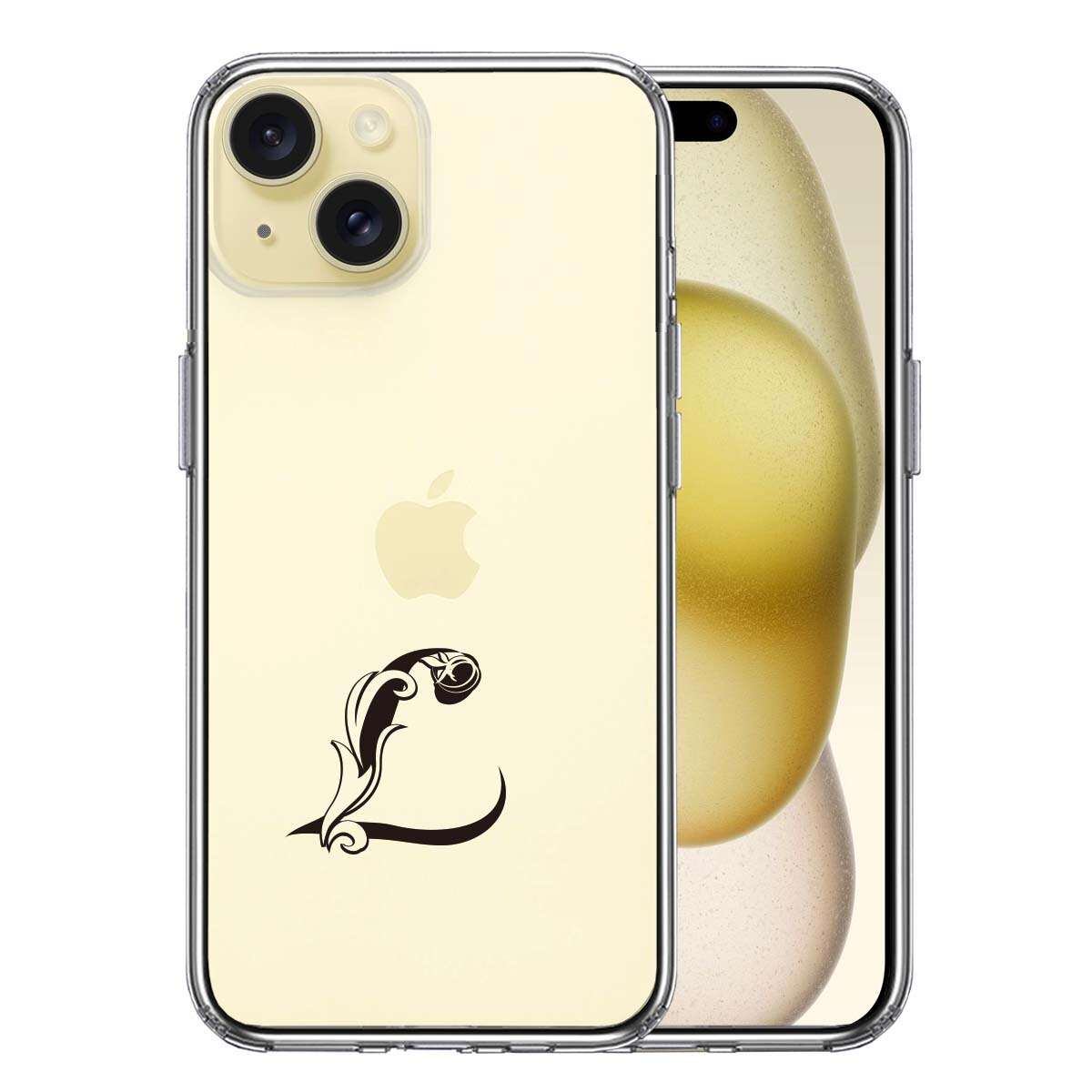 iPhone15 側面ソフト 背面ハード ハイブリッド クリア ケース アルファベット 【L】