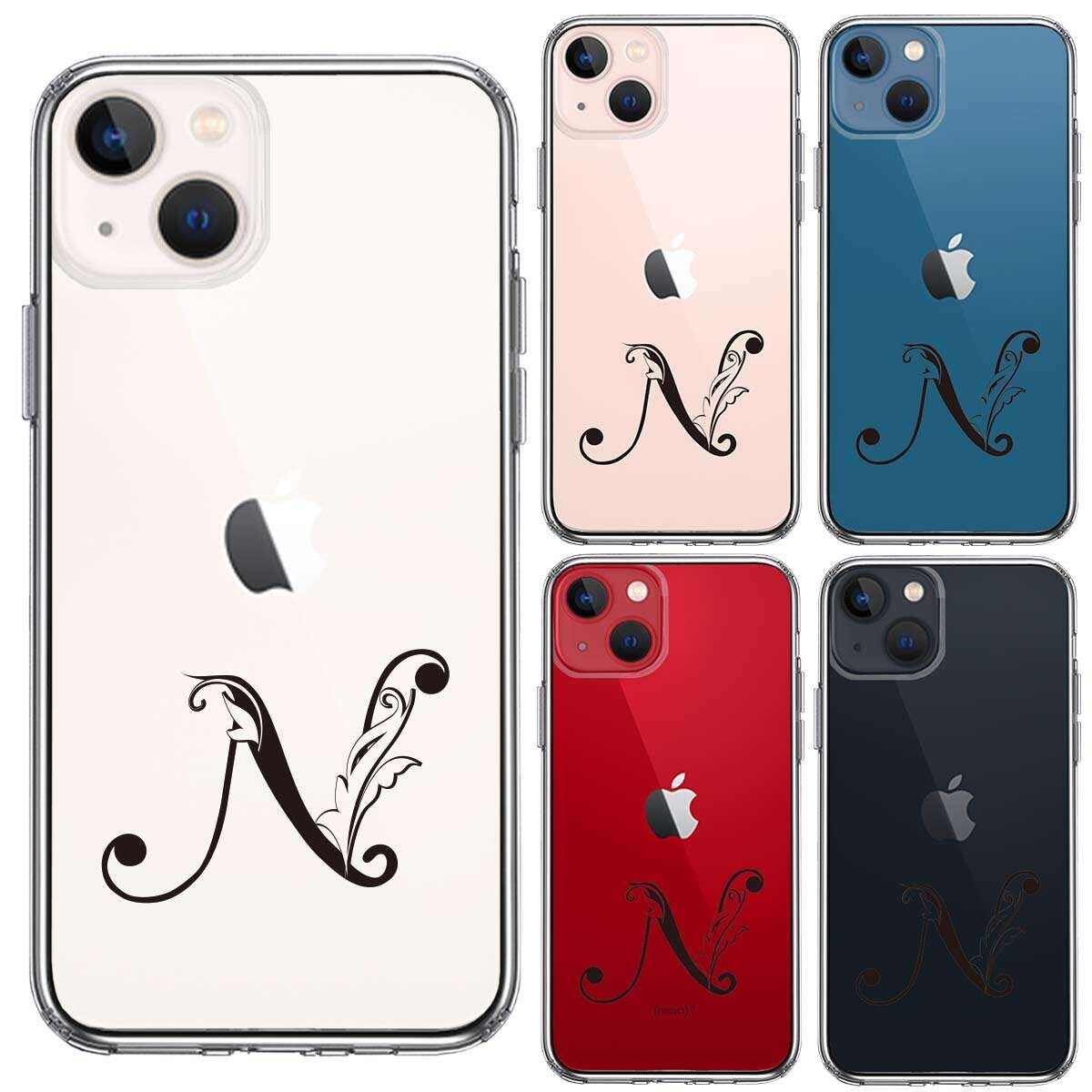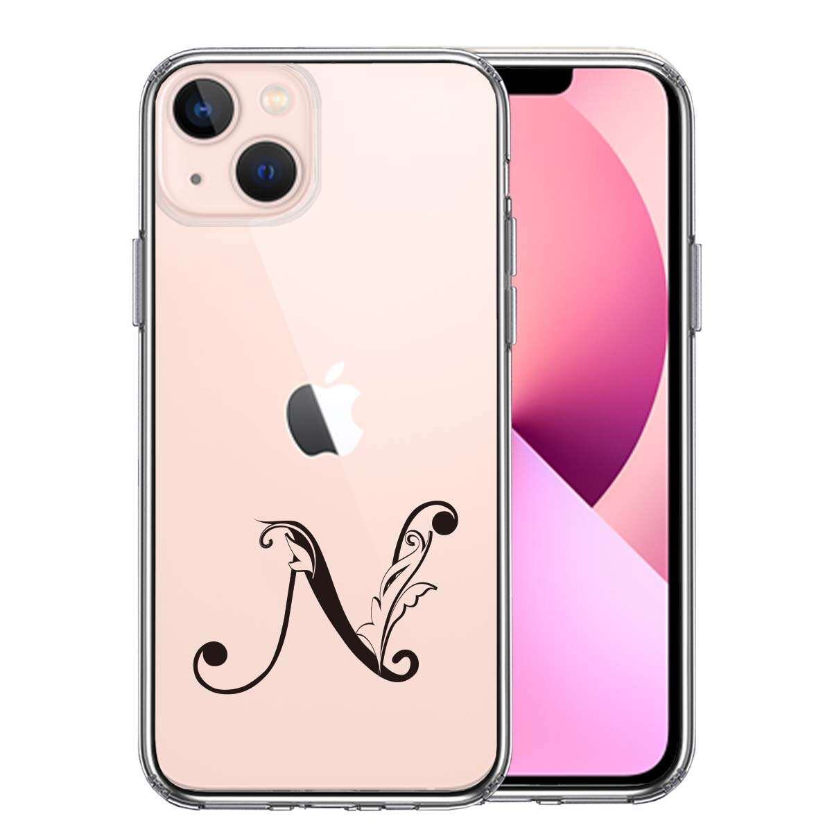 iPhone13 側面ソフト 背面ハード ハイブリッド クリア ケース アルファベット 【N】