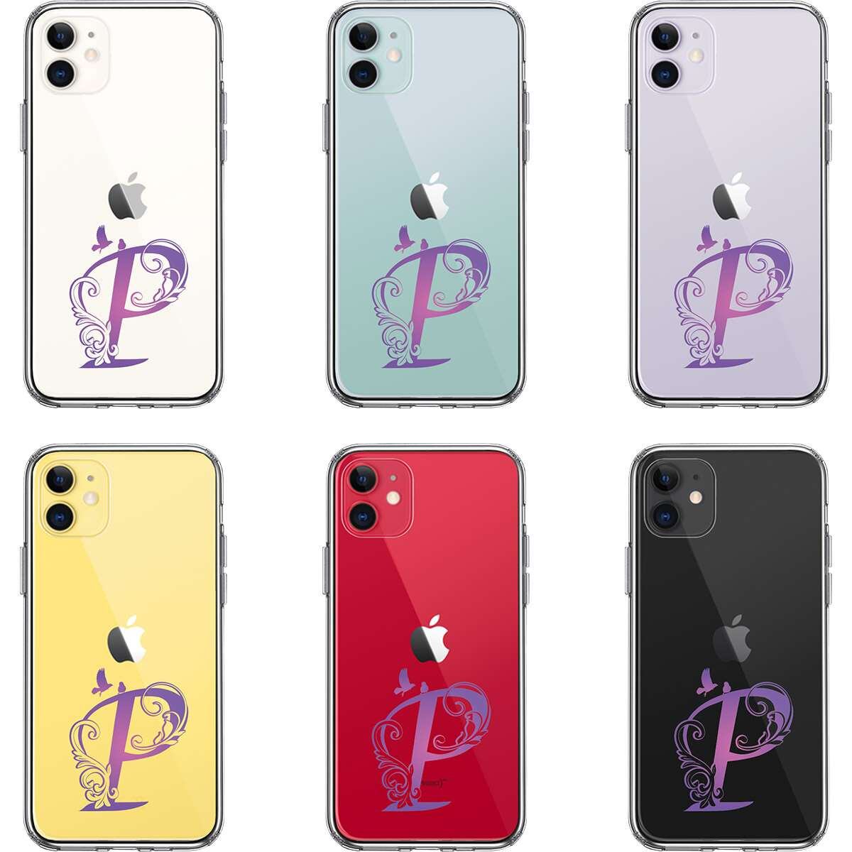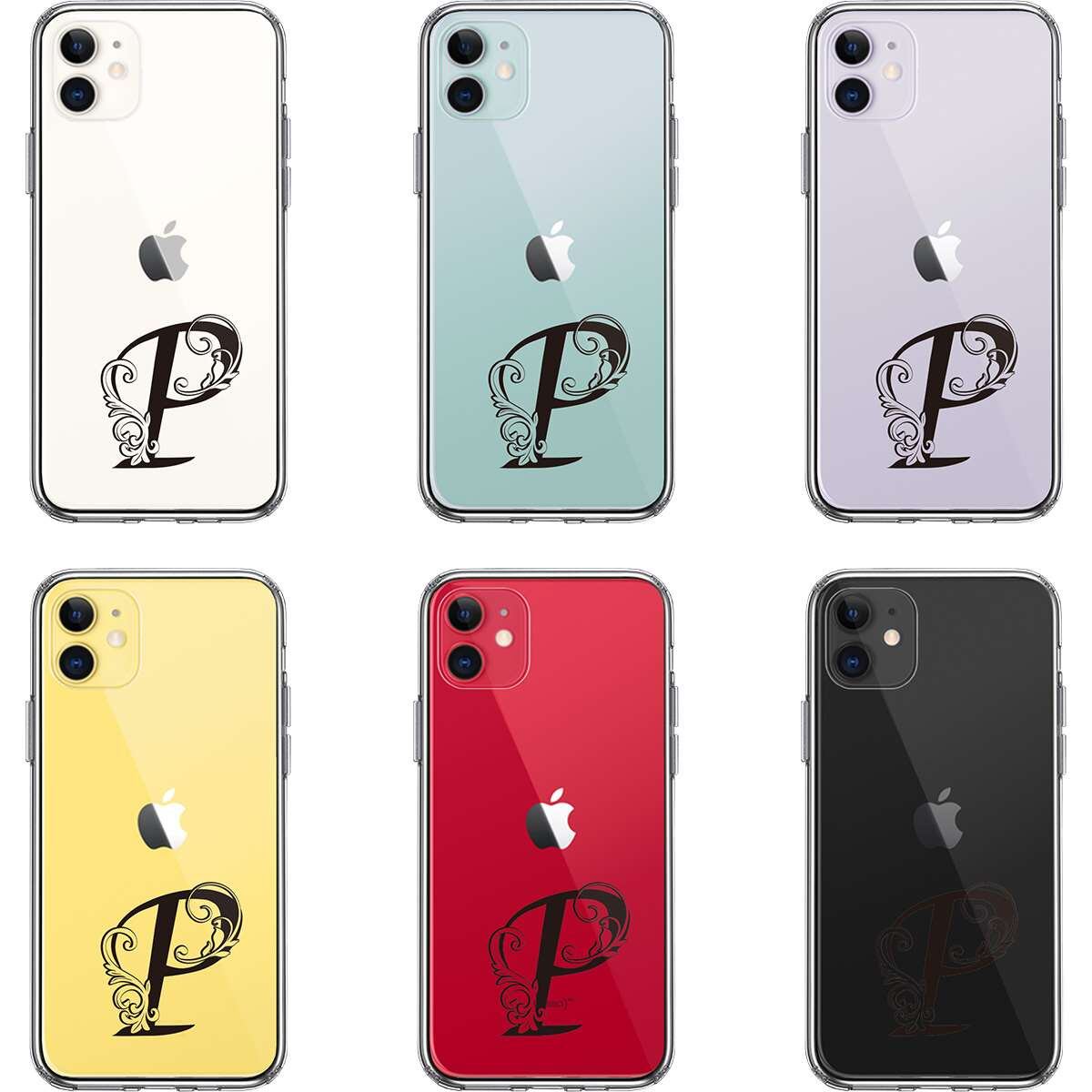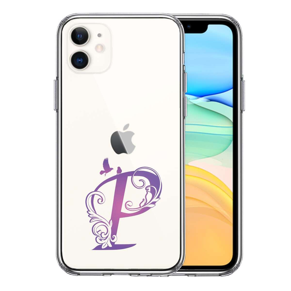 iPhone11 側面ソフト 背面ハード ハイブリッド クリア ケース アルファベット 【P】