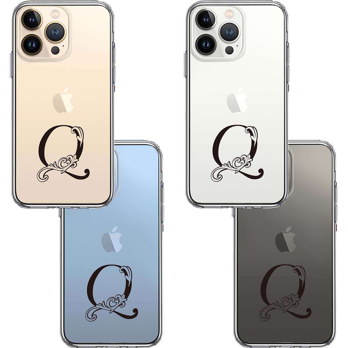 iPhone13 Pro 側面ソフト 背面ハード ハイブリッド クリア ケース アルファベット 【Q】