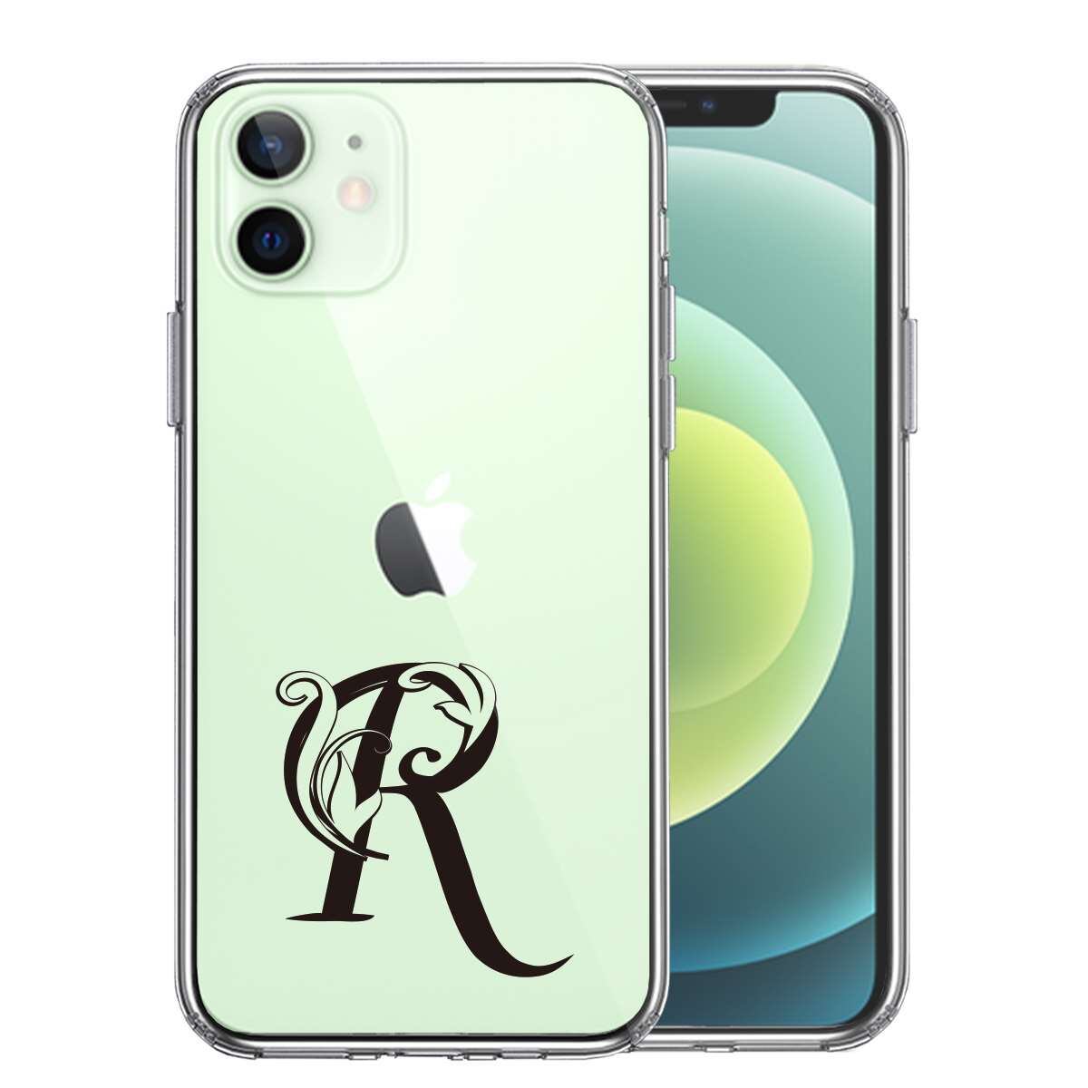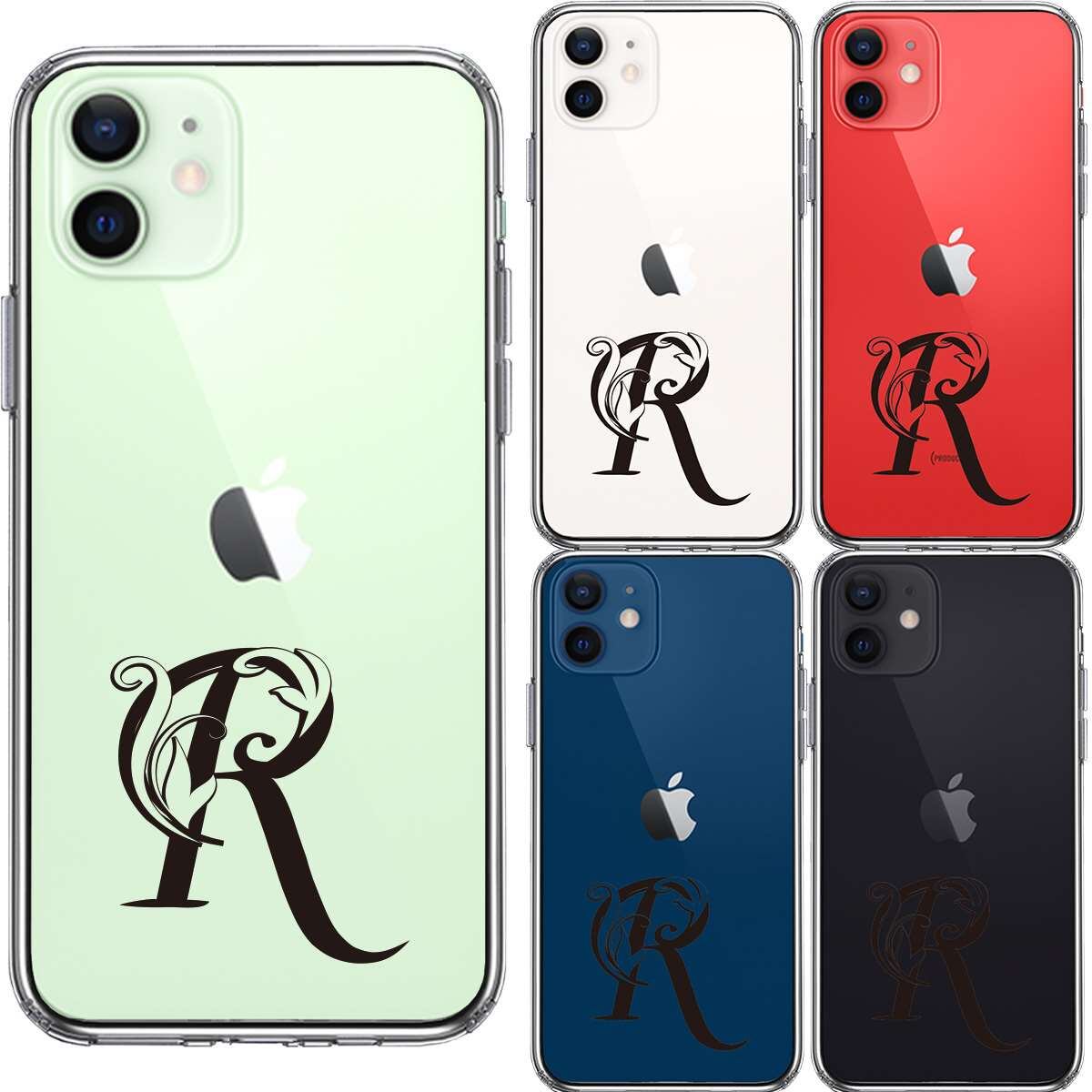 iPhone12 側面ソフト 背面ハード ハイブリッド クリア ケース アルファベット 【R】