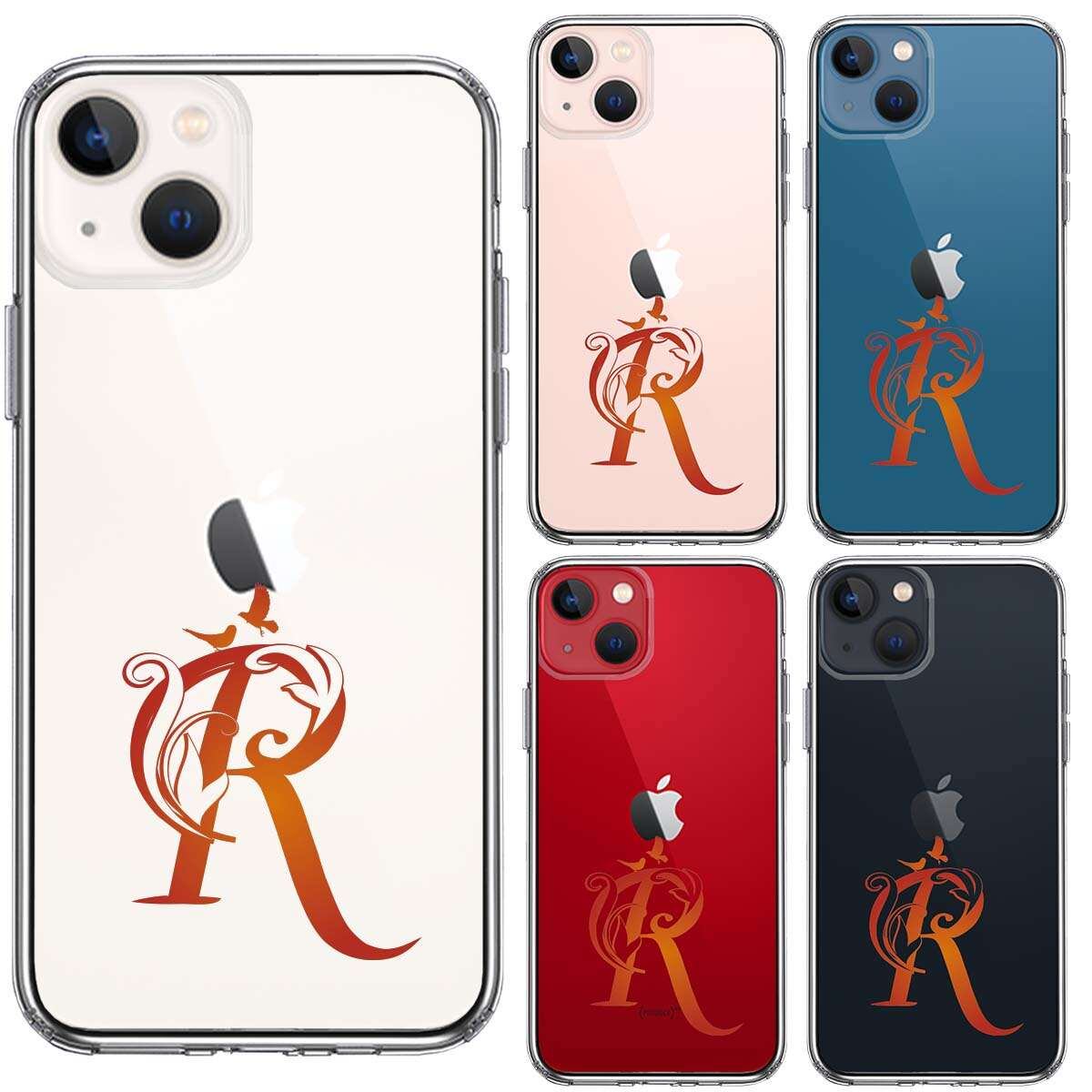 iPhone13mini 側面ソフト 背面ハード ハイブリッド クリア ケース アルファベット 【R】