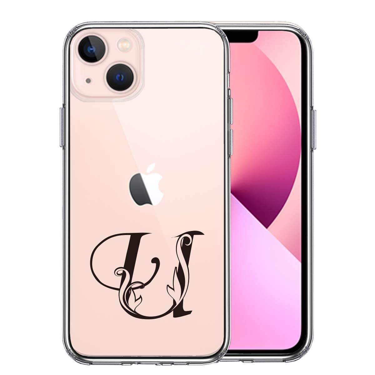 iPhone13mini 側面ソフト 背面ハード ハイブリッド クリア ケース アルファベット 【U】