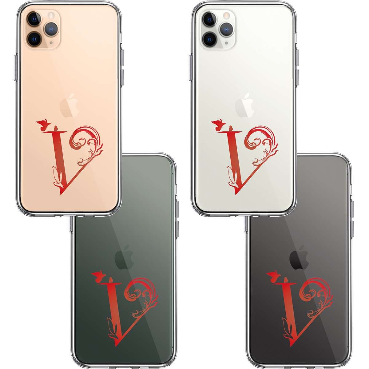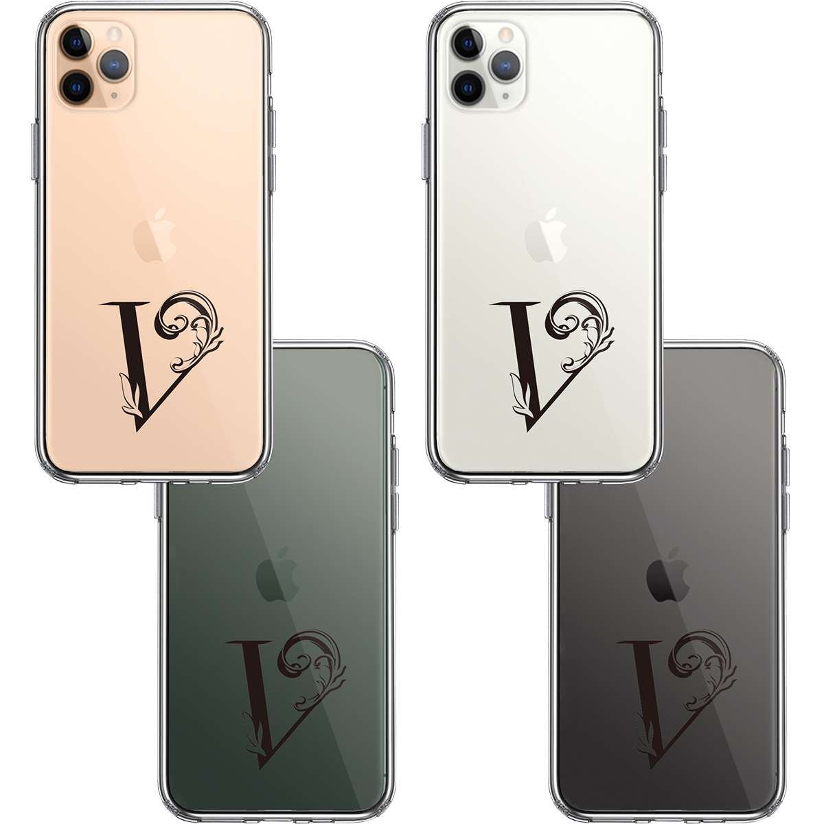 iPhone11pro 側面ソフト 背面ハード ハイブリッド クリア ケース アルファベット 【V】