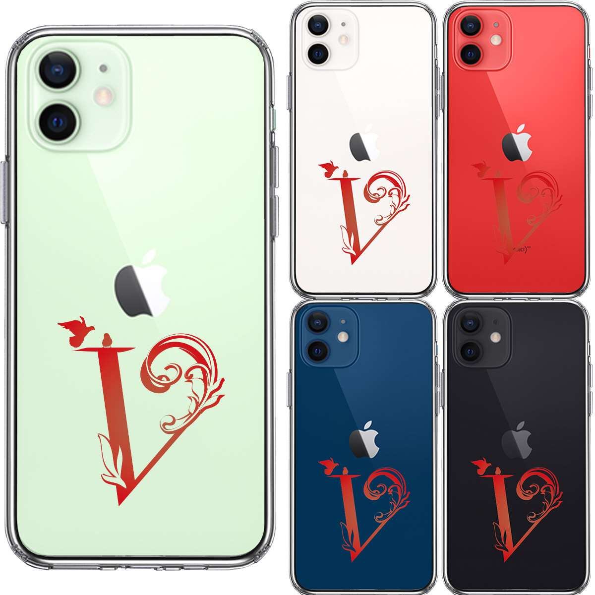 iPhone12mini 側面ソフト 背面ハード ハイブリッド クリア ケース アルファベット 【V】