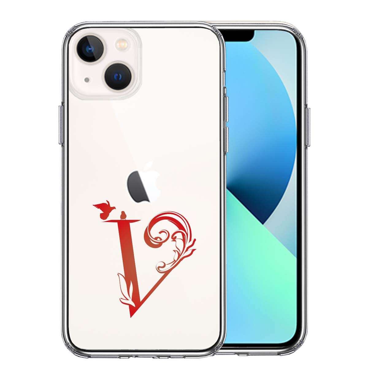 iPhone13mini 側面ソフト 背面ハード ハイブリッド クリア ケース アルファベット 【V】